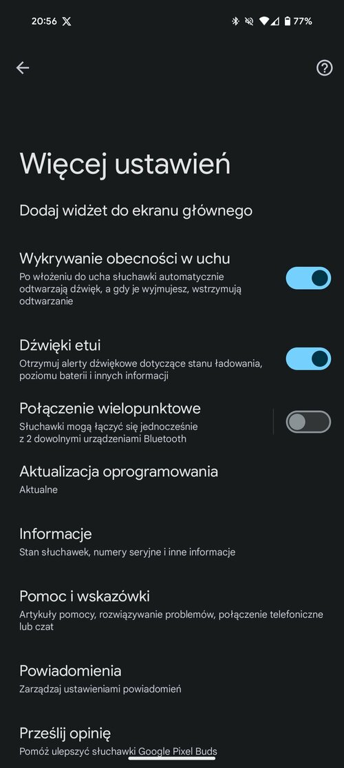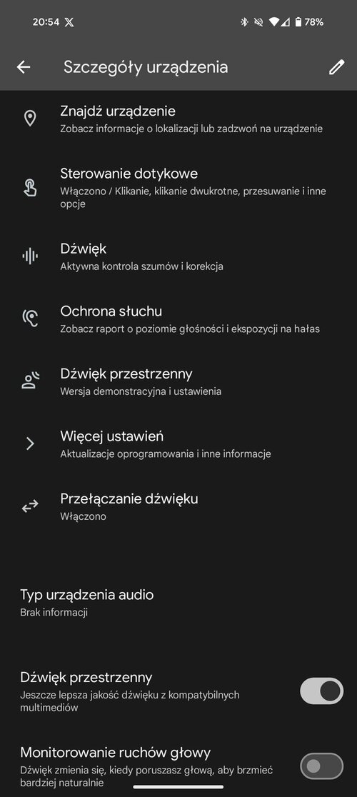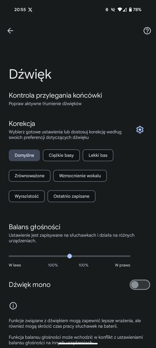 Możemy kontrolować brzmienie, działanie ANC, dopasować w bardzo ograniczonym stopniu sterowanie, zaktualizować słuchawki. Nie ma tu niczego nadzwyczajnego, ale jest wszystko, co być powinno.