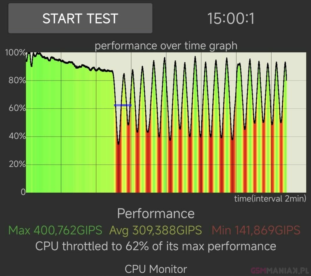 Mój ulubiony benchmark to throttlowanie procesora. Nie tylko pokazuje jak na dłoni, jak zachowuje się SoC, ale także nagrzewa obudowę do maksymalnej temperatury. W tym przypadku Xiaomi Mix Flip po prostu parzył w dłoń, jeśli trzymamy go za górę obudowy.