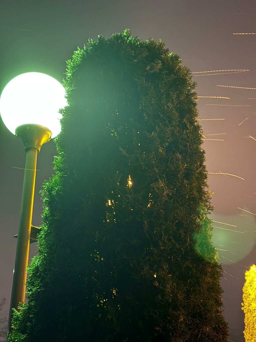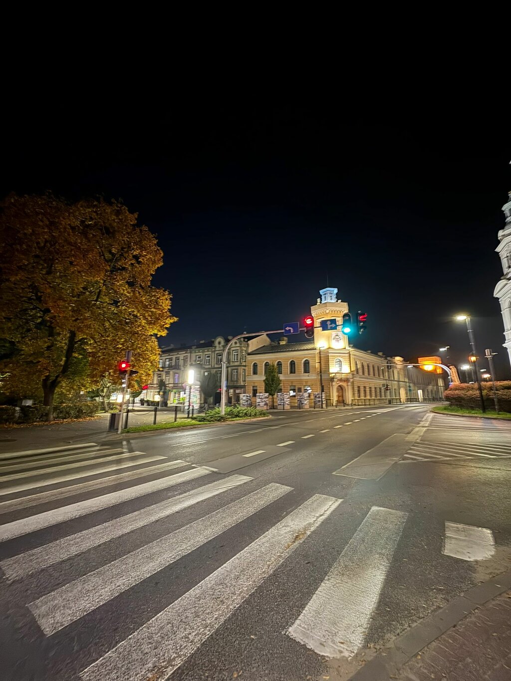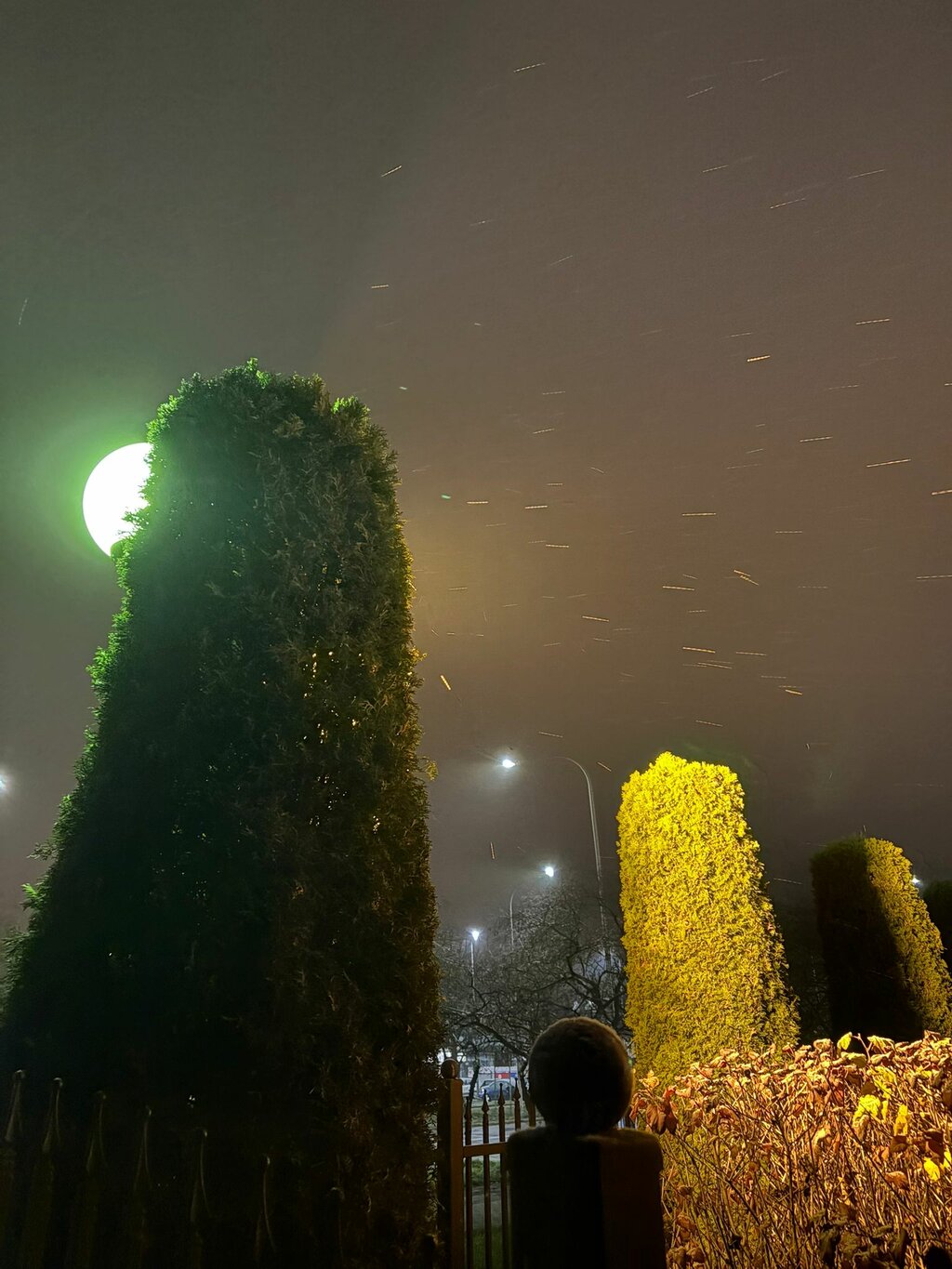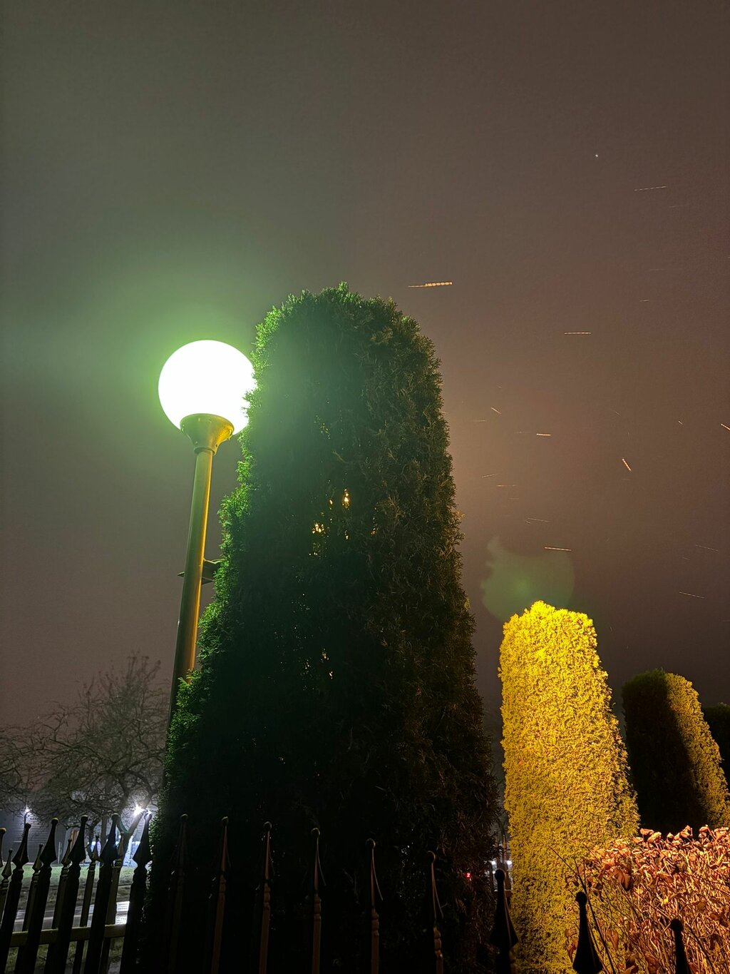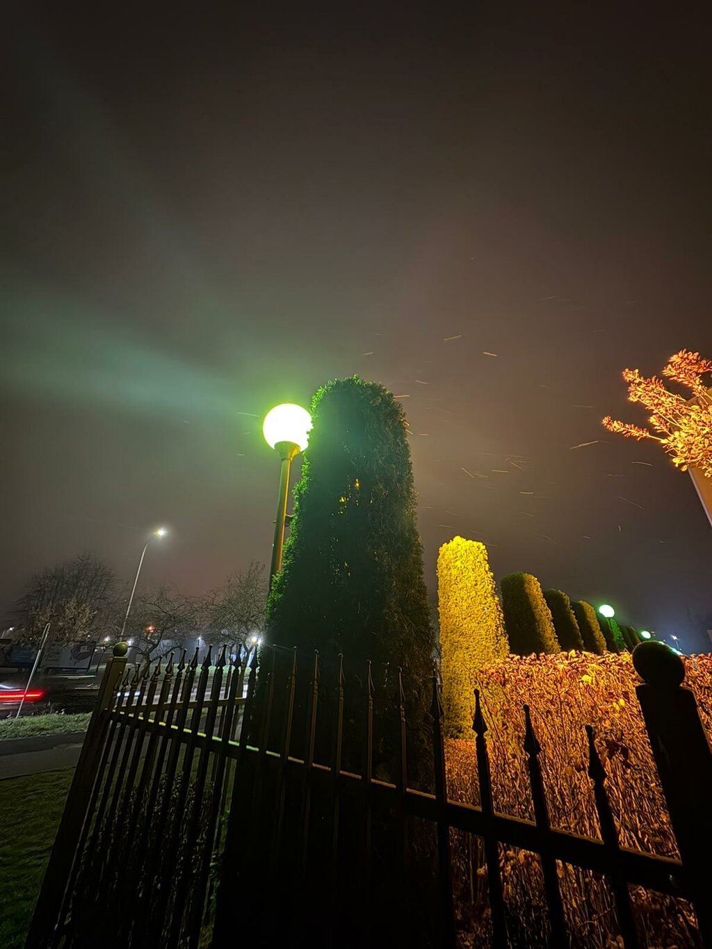 Co ze zdjęciami nocnymi? Ktoś może zarzucić mi, że miałem brudny obiektyw. Nie miałem. Takie efekty pojawiają się dość losowo wokół źródeł światła i nie mam pojęcia, co z tym zrobić. Czasami zdjęcia wychodzą świetne, a czasami – jak poniżej.
