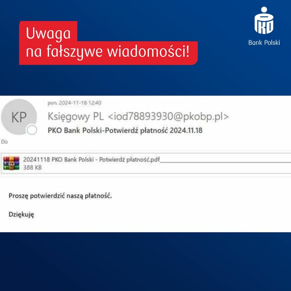 W całej tej sytuacji PKO Bank Polski przypomina swoim klientom, że nigdy nie wysyła e-maili i SMS-ów z linkami prowadzącymi do logowania na stronie banku. To samo tyczy się z załącznikami. Bank apeluje, by przed zalogowaniem do serwisu iPKO zawsze dokładnie sprawdzać adres strony. W przypadku jakichkolwiek podejrzeń co do autentyczności wiadomości lub strony internetowej – instytucja zachęca do kontaktu z nią za pomocą bezpłatnej infolinii pod numerem 800 302 302.