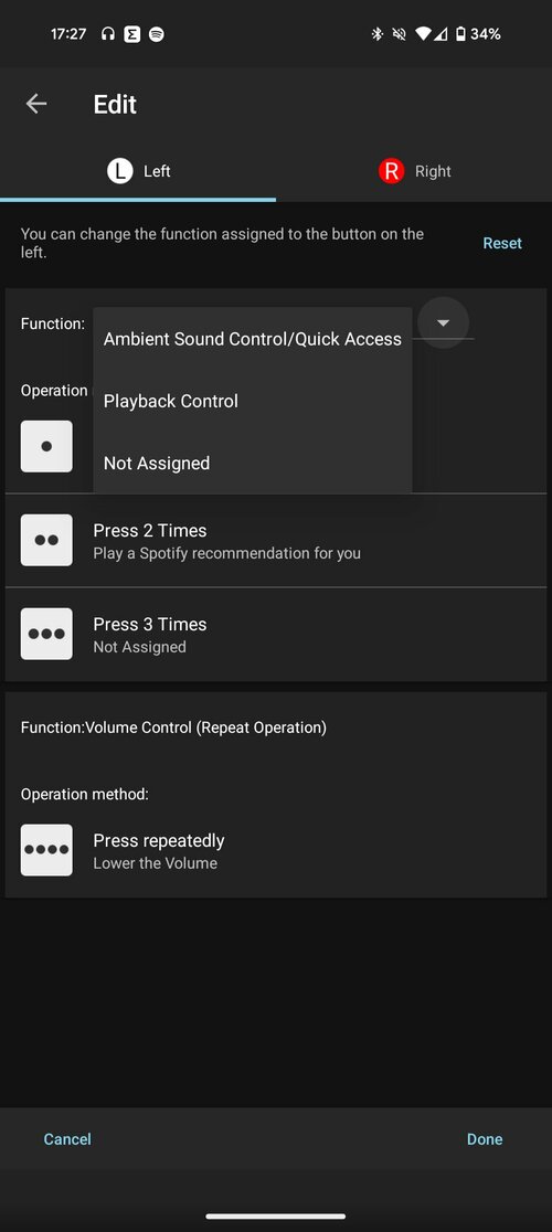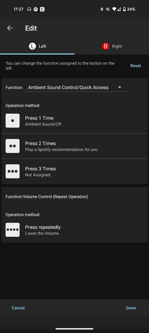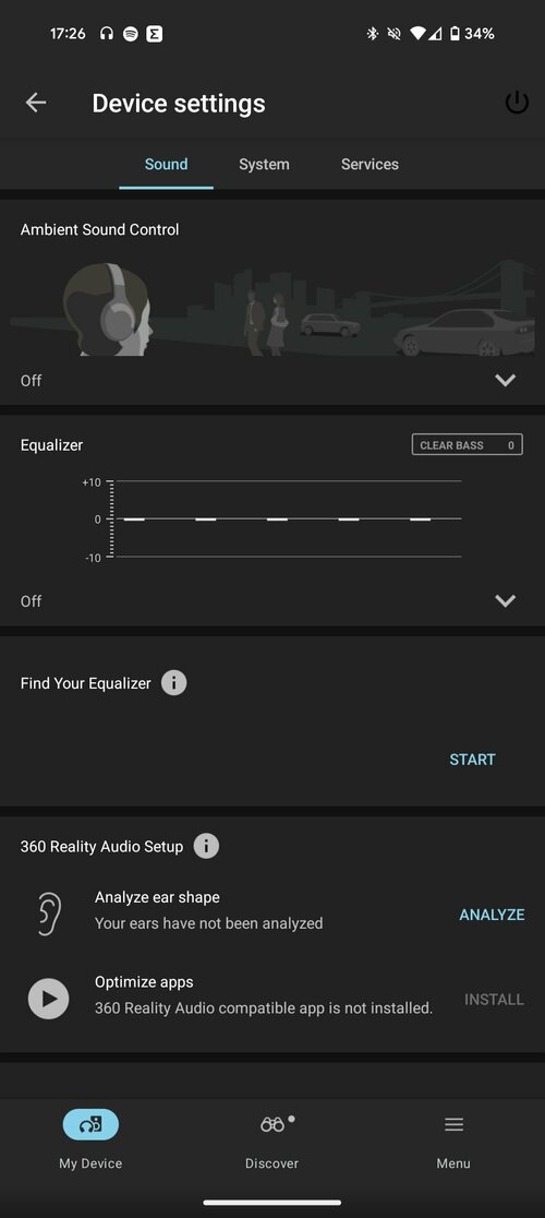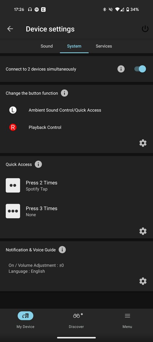 To pasowałoby powiedzieć o tym, cóż takiego ono umożliwia w kontekście zarządzania naszymi słuchawkami. Niestety, nie ma tego wiele na starcie, a personalizacja jest raczej ubo… wróć – nie ma jej w zasadzie. No ale bez przedłużania, oto, czym możemy sterować i w jaki sposób: