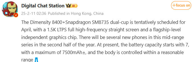 Przykłady? Proszę bardzo. Ten procesor widziałbym w realme GT7, flagowej Motoroli, kolejnej generacji dostępnych w Polsce Honorów (przy ich nazewnictwie nigdy nie wiadomo, czy będzie to 300 czy 400), czy w POCO F7. Wszystkie mają wspólny mianownik – to królowie promocji.