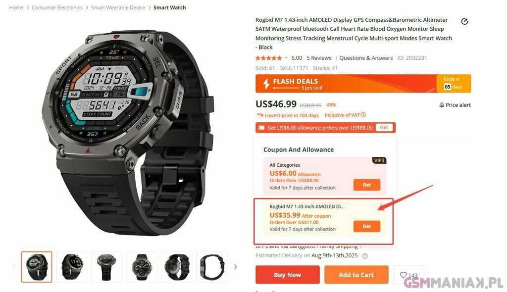 Smartwatch za 130 zł z GPS, AMOLED i baterią na 65 dni. Test Rogbid M7