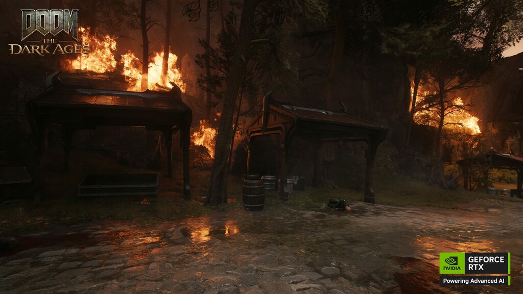 Ray Tracing czy Path Tracing to – rzecz jasna – kolejne mocne punkty na mapie technologii, których NVIDIA jest prekursorem. Świetnym przykładem jest tutaj najnowszy DOOM The Dark Ages, który bardzo dobrze pokazuje to, jak można umiejętnie zaimplementować ten sposób symulacji oświetlenia. Robi to zwyczajnie lepszy klimat całej rozgrywki, nadając grze dodatkowego charakteru.