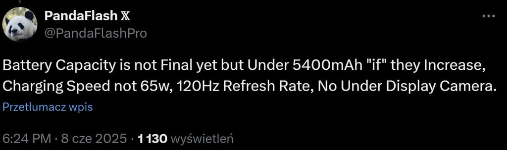 Leakster @PandaFlashPro podzielił się doniesieniami na temat nowości w Samsungu Galaxy S26 Ultra. Spojler – w zasadzie ich nie ma. Zapowiadane w przeciekach uniwersalne ładowanie 65W niestety nie znalazło aprobaty u koreańskiego producenta, więc ich nowe flagowce nadal będziemy ładować ponad godzinę.