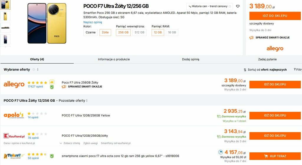 Na początek sama promocja, w której to POCO F7 Ultra jest dostępny za kasę, którą kojarzyć można raczej z POCO F7 Pro. Wariant 12/256 kosztuje tylko 2134 złote. Ponadto możesz liczyć na darmową wysyłkę z Polski, co w przypadku zakupu telefonów z AliExpress jest raczej rzadkością.