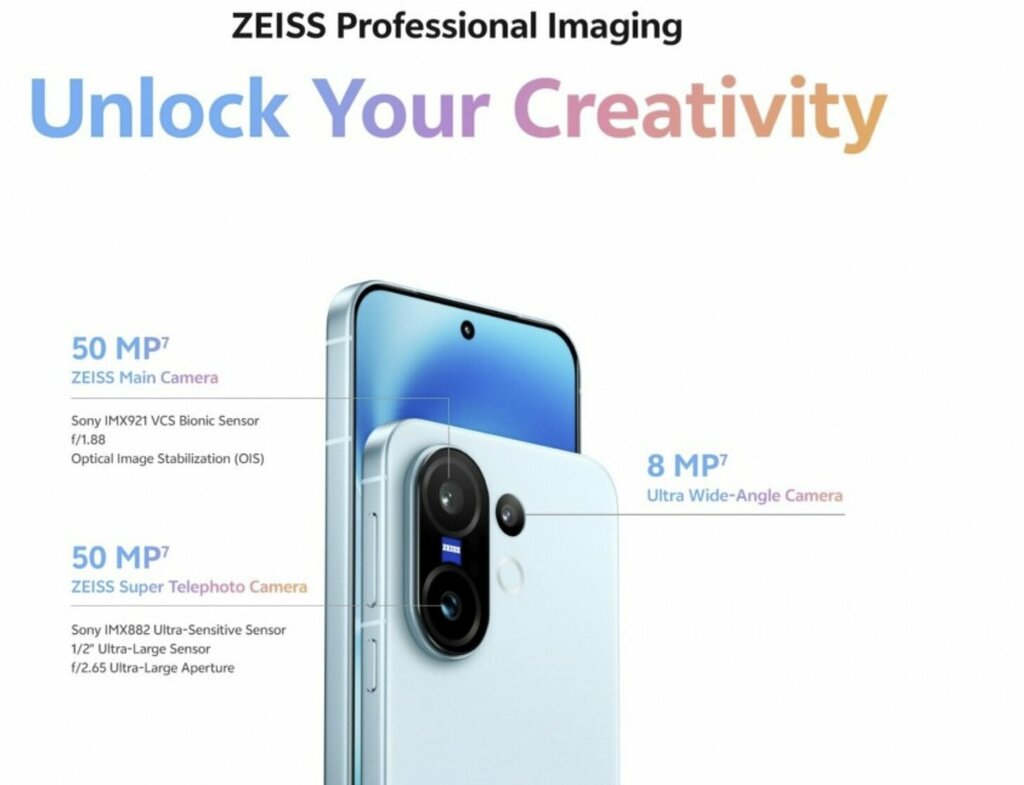 Na tylny panel vivo X200 FE trafi 50 MP aparat główny, 50 MP teleobiektyw i 8 MP szeroki kąt. Poza tym ostatnim zapowiada się niemal flagowiec, potrafiący zrobić dobre zdjęcia w każdych warunkach. O kolory i portrety zadbał ZEISS.