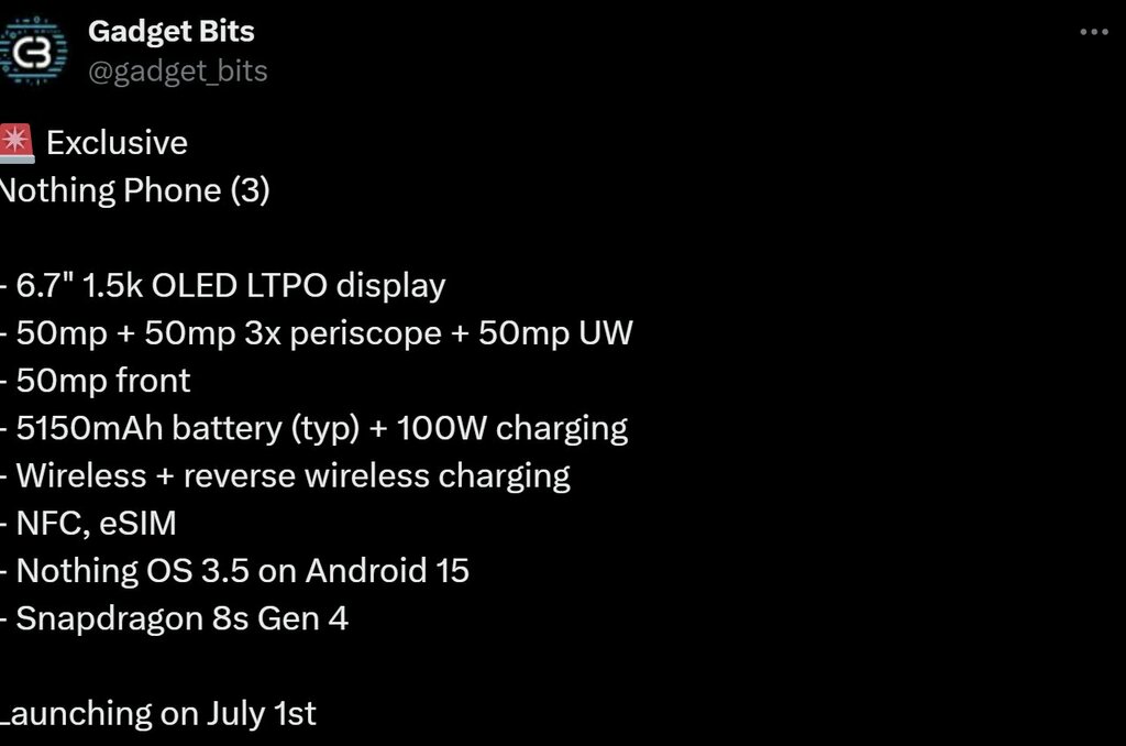 Nothing Phone 3: pełna specyfikacja przed premierą