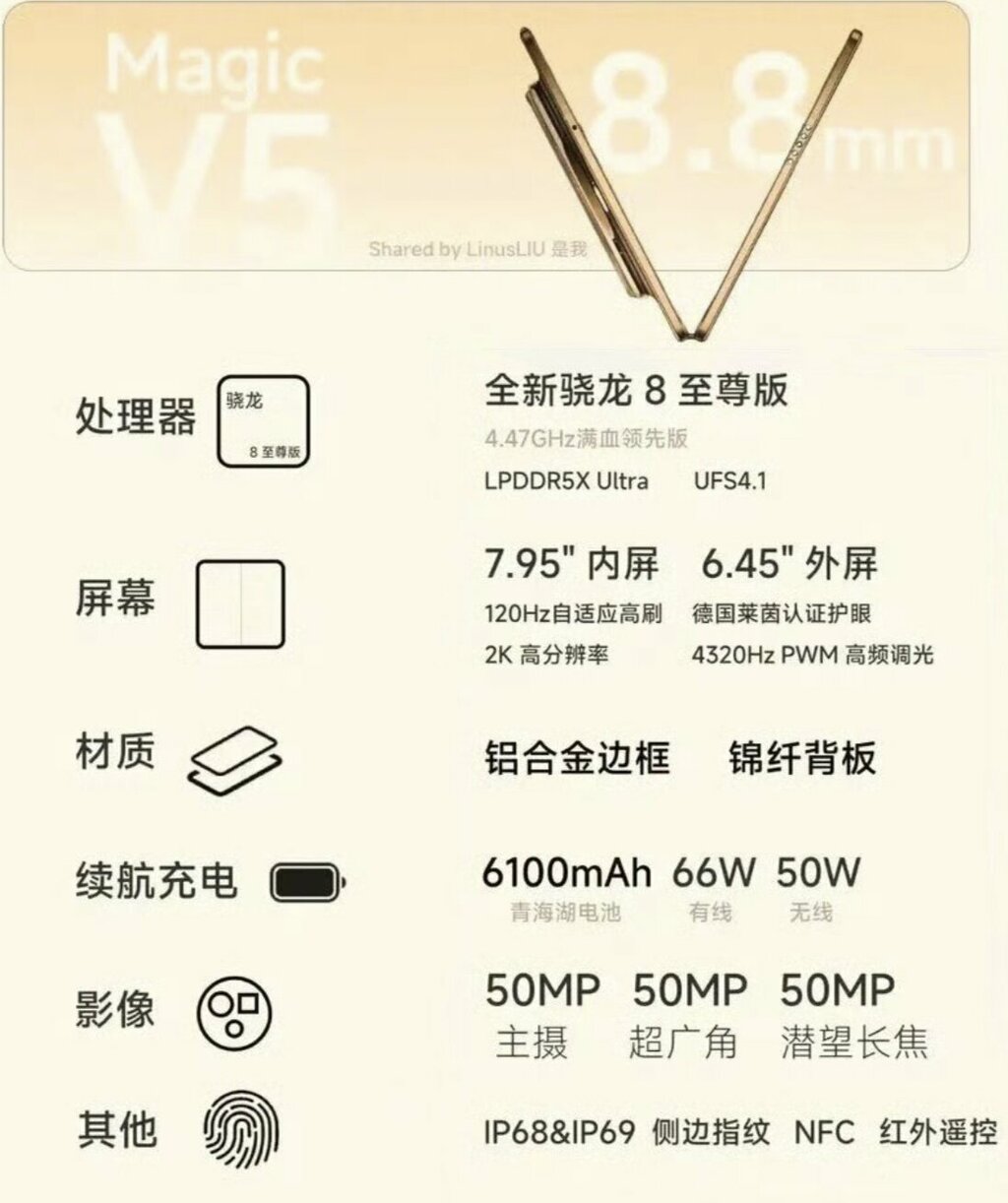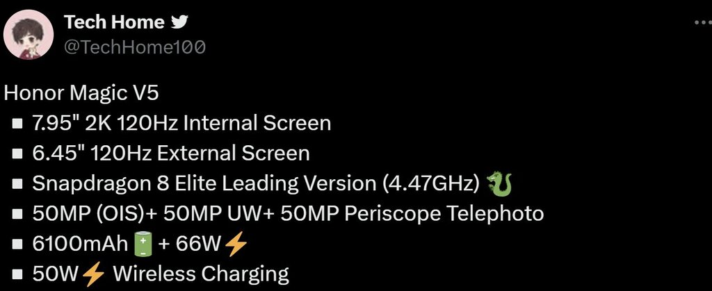 Specyfikacja Honor Magic V5 w sieci przed premierą