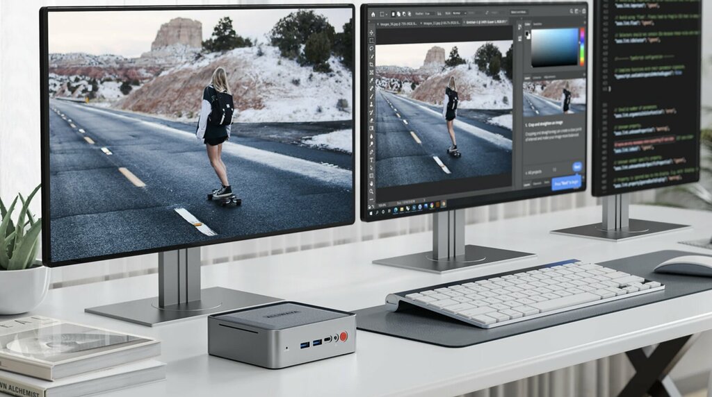 Sam miniPC to prosta i minimalistyczna konstrukcja z 13 generacją procesorów Intela (N150). Gamingowego potwora nie oczekuj, ale przy 16 GB RAM i 512 GB na pełnoprawnym dysku SSD poradzisz sobie z każdym biurowym zadaniem. Ilość pamięci operacyjnej przyda się też przy pracy w przeglądarce. Subiektywnie to również bardzo ładny kawałek elektroniki, który spokojnie może znaleźć się w salonie i posłużyć jako przystawka do telewizora.