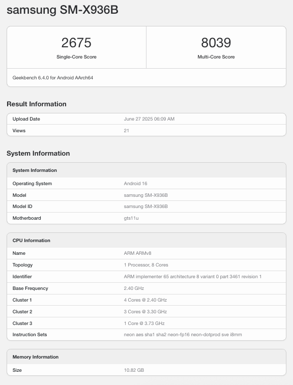 Samsung Galaxy Tab S11 Ultra pokazuje procesor i wydajność