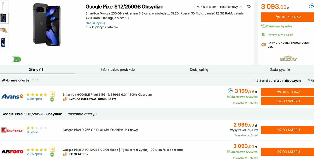 Chcesz kupić Pixela 9 w cenie takiej jak w Austrii? Oczywiście nie ma tu mowy o bezpośredniej wysyłce do Polski, ale możesz skorzystać z usług pośrednika. Nie zachęcam, nie zniechęcam – zostawiam to tutaj tylko informacyjnie.