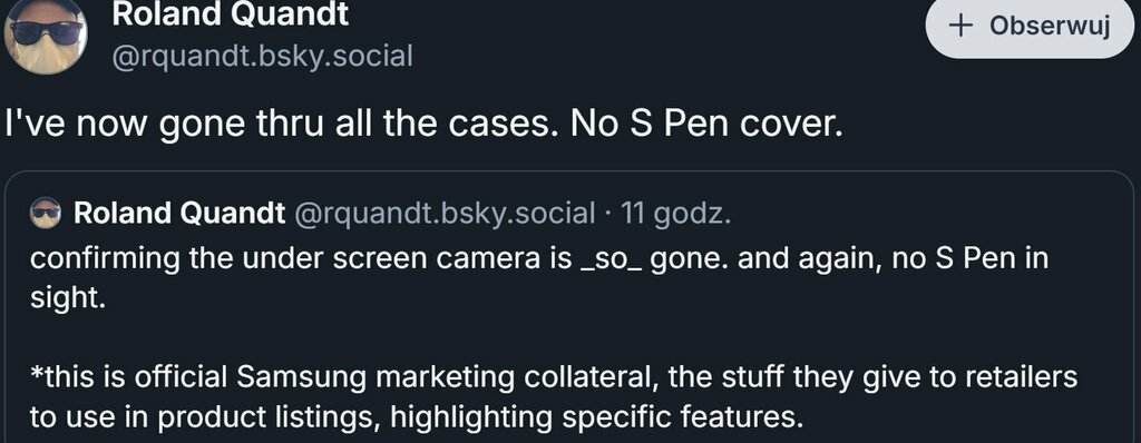 Roland Quandt potwierdził to, co rzuciło mi się w oczy we wczorajszym tekście Pawła – brak S Pen dla Galaxy Z Fold7. Nie mając pewności co do dosłownie każdego z etui, postanowiłem zaczekać, ale na dzień przed oficjalną premierą jest to już oficjalne. Nie licz na stylus, a przez dążenie do jak najcieńszej obudowy koreański producent pozbył się również warstwy digitizera. Oznacza to, że stylusy z poprzedniej generacji nie będą działać.