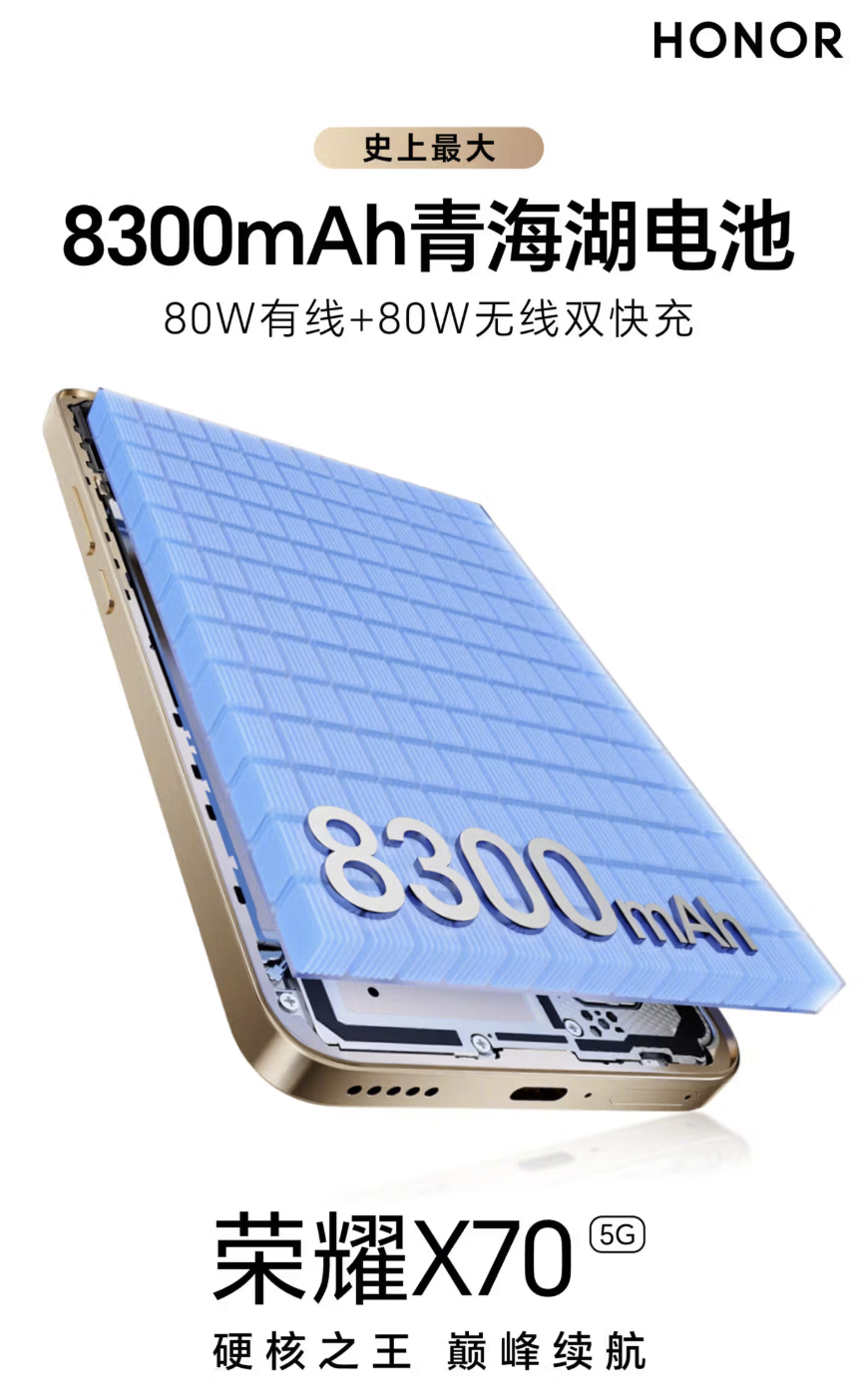 Honor X70 z olbrzymią baterią 8300 mAh potwierdził datę premiery, ale i obecność podwójnego ładowania 80W. Zgadza się – moc po kablu i bezprzewodowo jest taka sama.