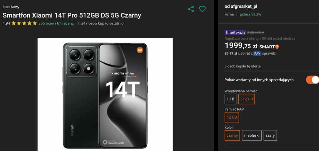 Na początek zaznaczę, że promocja jest przeznaczona dla użytkowników Smart. To dla nich na Allegro ze sklepu cieszącego się dobrymi opiniami Xiaomi 14T Pro jest dostępny za 1999 złotych. Jeżeli mnie pamięć nie myli, to jeszcze nigdy nie był u nas oferowany w tak dobrej cenie. Poza Samsungiem Galaxy S25 to chyba najfajniejsza promocja ostatnich dni.