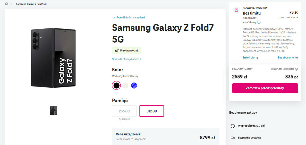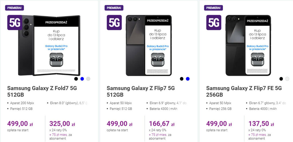 Od końca czerwca dostępny jest konkurencyjny abonament T-Mobile za 75 zł miesięcznie i jest to w zasadzie jedyna oferta operatora z telefonem. Jak wypada cenowo z nowymi Galaxy Z?