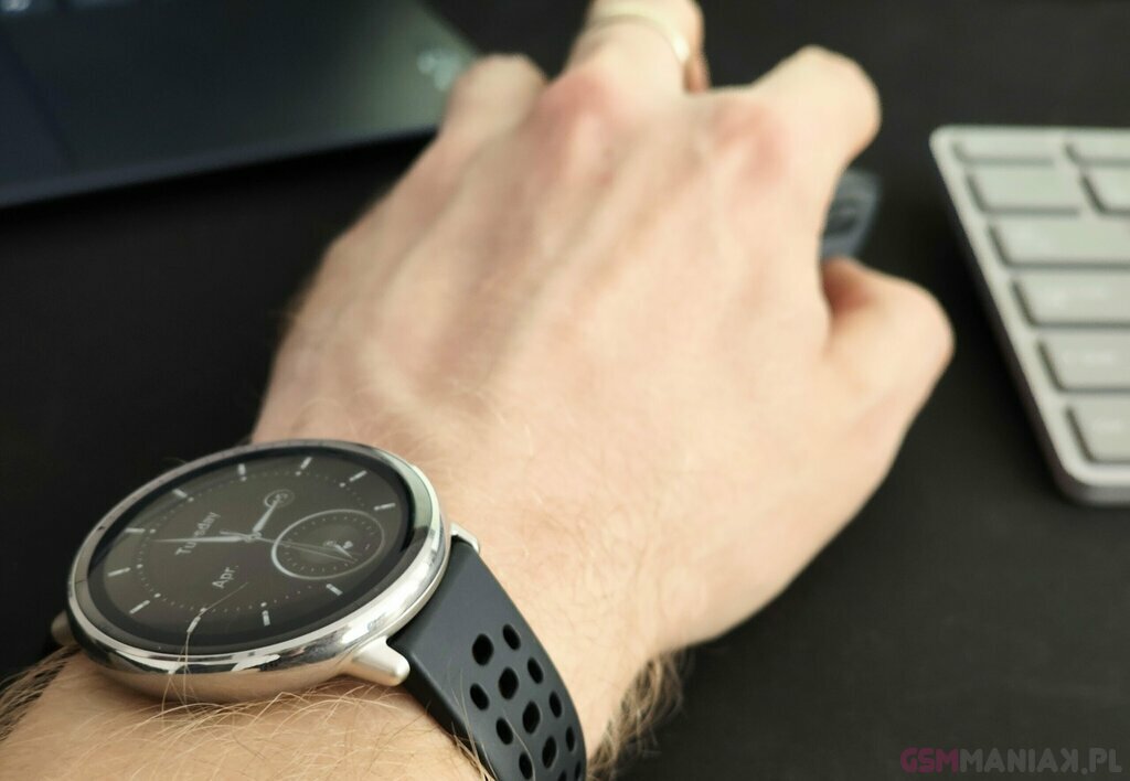 Przód doposaża 1.32-calowy AMOLED z funkcją AoD. Rozdzielczość panelu to 466 x 466 pikseli. Z kolei szerokość koperty wynosi 43.9 mm. Konstrukcję wykonano ze stali nierdzewnej, a wyświetlacza chroni szkło hartowane 2,5D. Czego chcieć więcej za mniej niż 400 złotych? Od ekranu chyba nic.