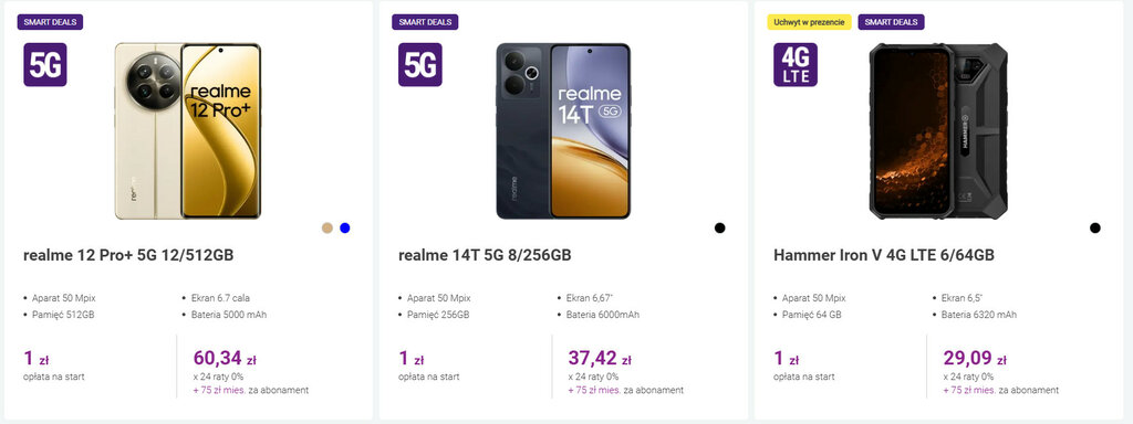 Zobaczmy na dostępne obecnie smartfony w ofercie SmartDeals i ich ceny startowe i ratalne w Ofercie M 5G: