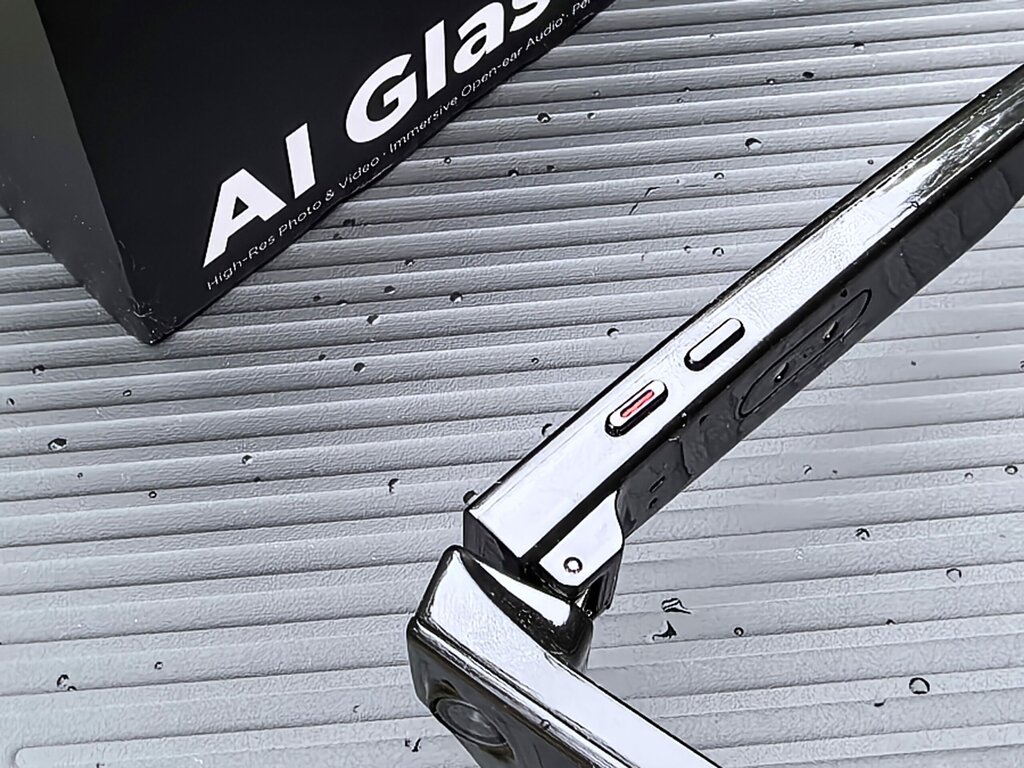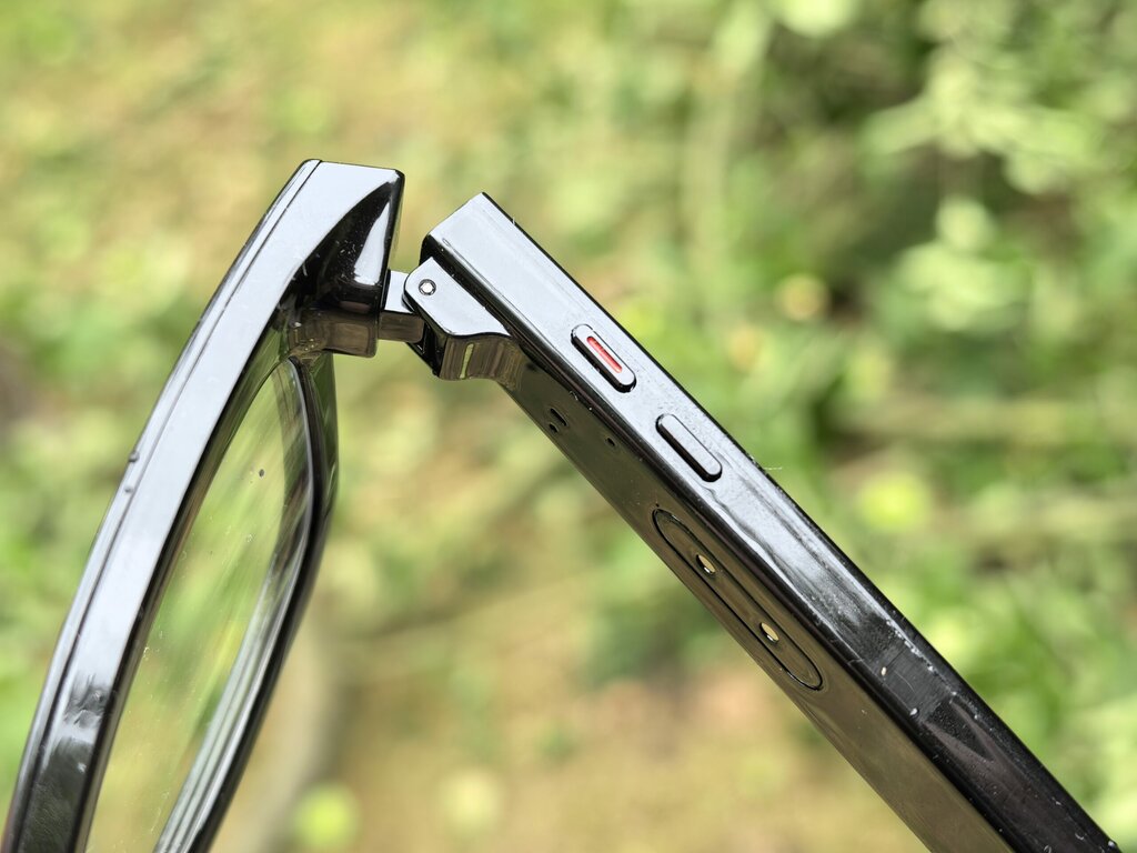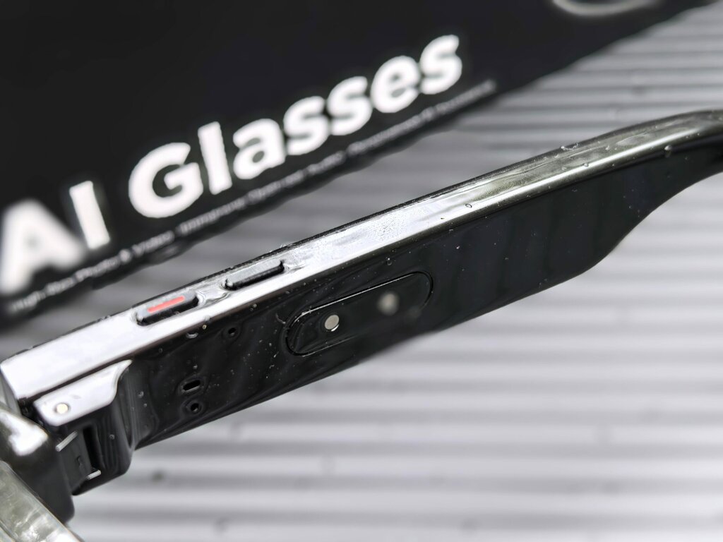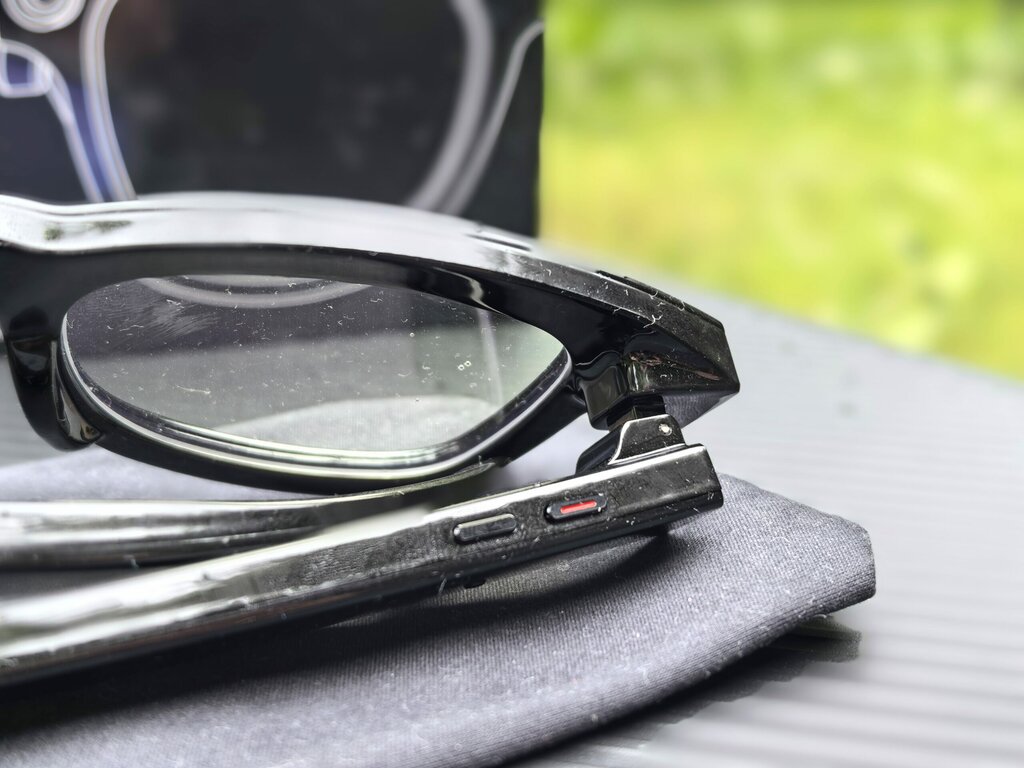 Zacznijmy od plusów. Rozmieszczenie przycisków i panelu dotykowego w Zeblaze AI Glasses to przykład przemyślanej ergonomii. Przyciski na prawym zauszniku są łatwe do zlokalizowania palcem – zarówno włącznik, jak i przycisk aktywujący asystenta AI.