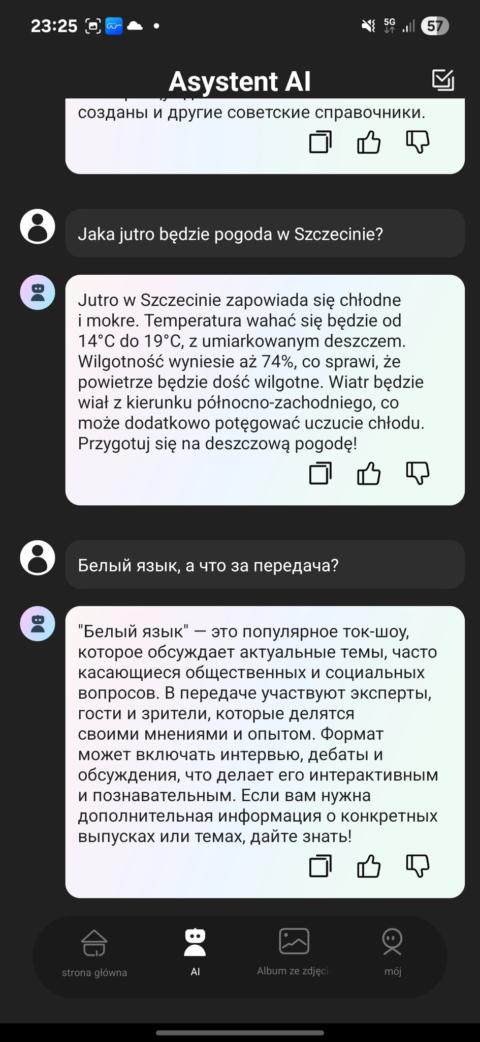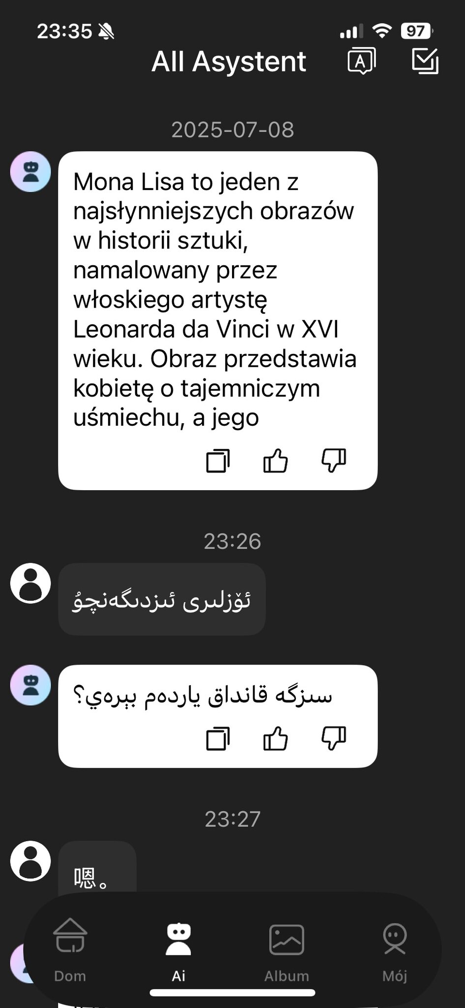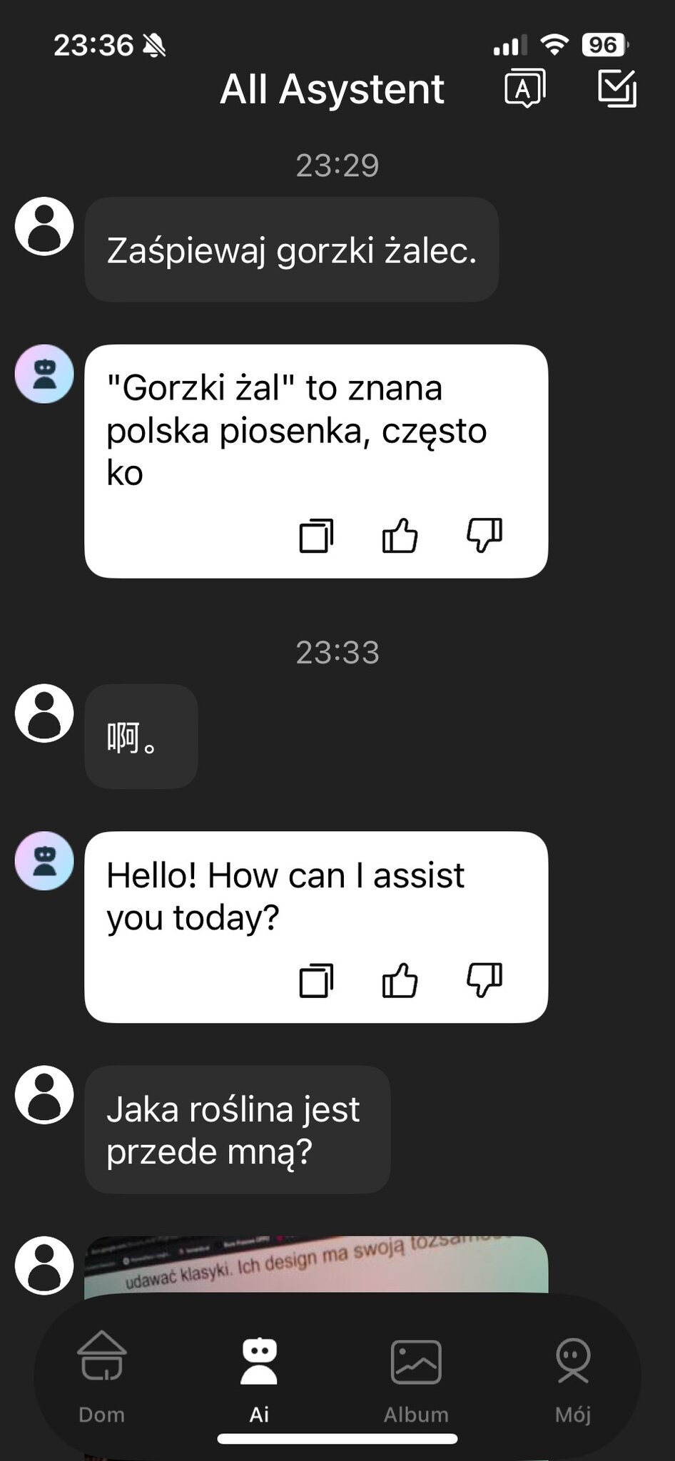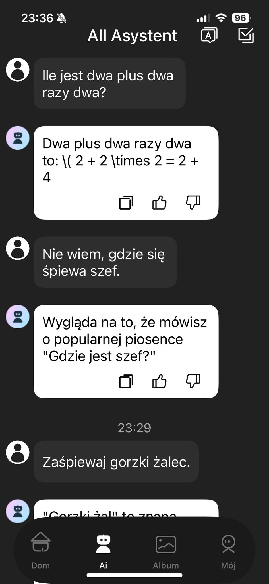Największą bolączką jest, niestety, sztuczna inteligencja. Producent obiecuje ChatGPT-4o mini, a w praktyce dostajemy coś, co działa z kapryśną losowością maszyny vendingowej. Próby rozpoznawania obrazu kończą się milczeniem, a asystent głosowy, choć teoretycznie wielojęzyczny, odpowiada raz po niemiecku, raz po mandaryńsku, innym razem po rosyjsku, mimo że ja uparcie gadam po polsku.