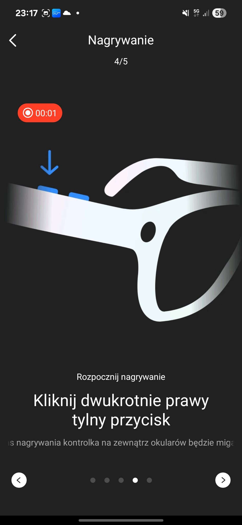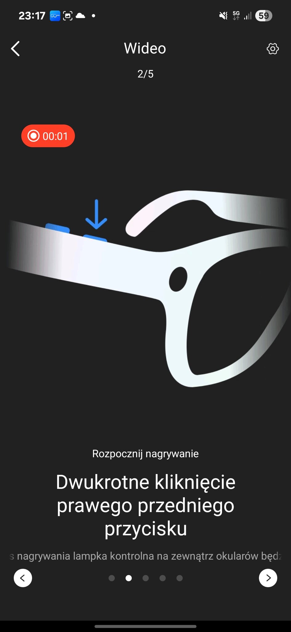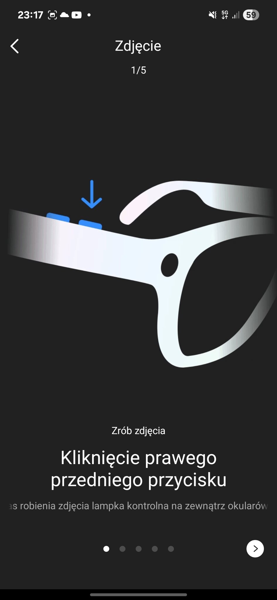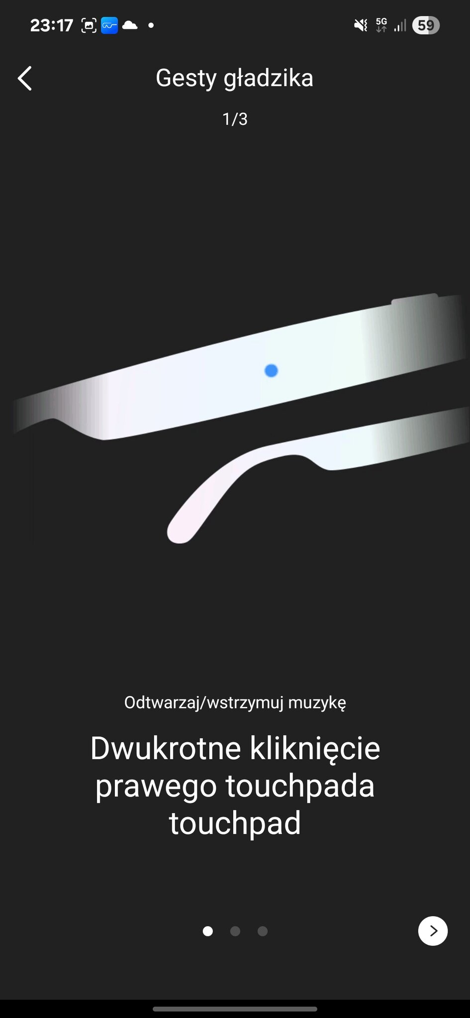 Waga? 49 gramów. Jak na okulary – sporo, ale jak na sprzęt naszpikowany elektroniką – akceptowalnie. Jako osoba nosząca klasyczne okulary korekcyjne, nie odczuwałem z nimi wyraźnego dyskomfortu, choć nie da się ukryć, że są cięższe od przeciętnych oprawek.