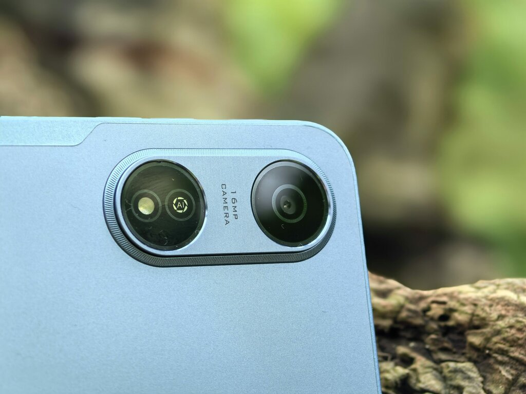 Wygląda to dość zabawnie, bo tak naprawdę z żadną sztuczną inteligencją ten tablet nie ma nic wspólnego, a sam aparat… no cóż, spełnia absolutne minimum. Na froncie natomiast znajdziemy ekran otoczony sporymi ramkami, ale akurat to można wybaczyć – w tej klasie to wciąż norma i mało kto oczekuje tu bezramkowego designu.