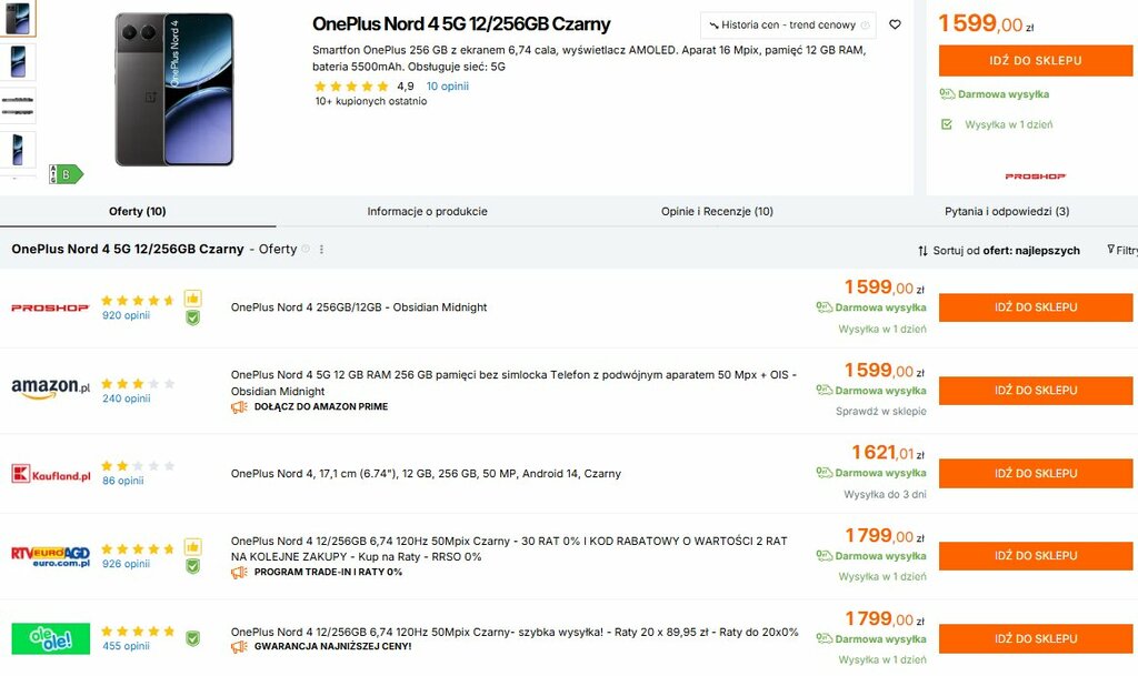 Porównywarka cenowa Ceneo jest bezlitosna dla polskich sklepów. Najlepsza oferta w Polsce na ten sam wariant to obecnie 1599 złotych. Możliwość zaoszczędzenia ponad 400 złotych na i tak bardzo opłacalnym smartfonie to gratka dla Łowcy Promocji.