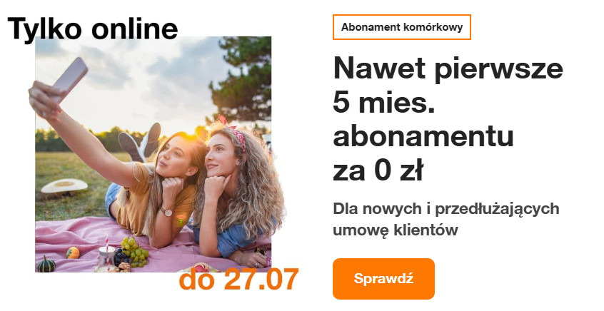 Nie tylko tanieje nasza Motorola na orange.pl, gdyż rabatem objęty jest także abonament pomarańczowego operatora. Tylko do 27 lipca w Planie M i Planie L nie będziesz opłacał abonamentu odpowiednio przez 4 i 5 miesięcy. W stosunku do standardowej oferty, zaoszczędzisz tym samym od 300 do 475 złotych.