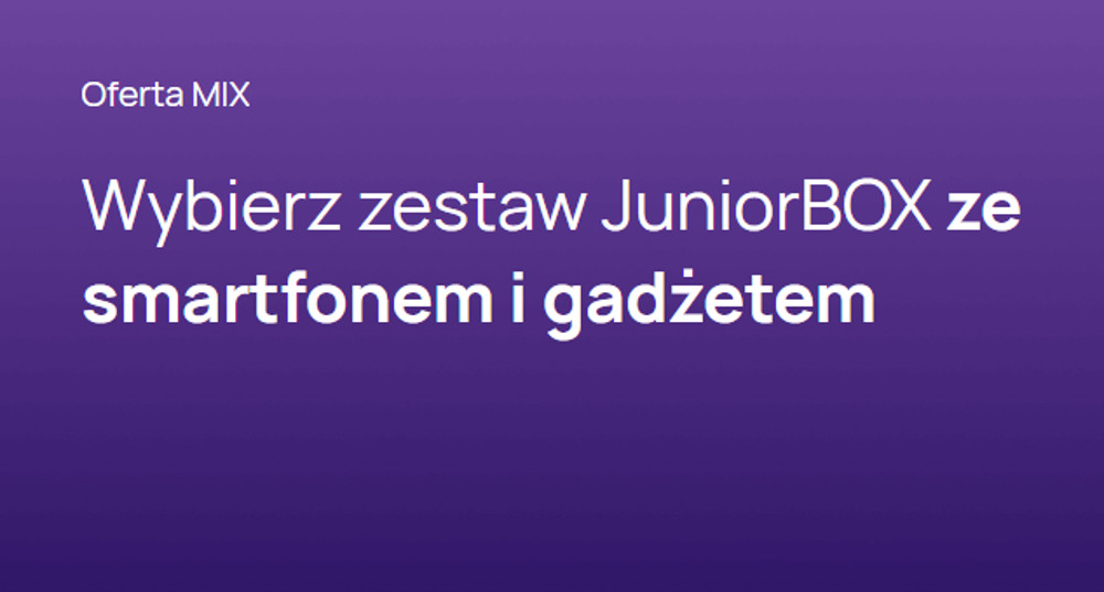 To tylko przykładowe pakiety Junior BOX z nowymi numerami. Jeśli wybierzesz opcję przeniesienia numeru lub przejścia z karty do mixa, to w ofercie znajdziesz jeszcze inne zestawy urządzeń.