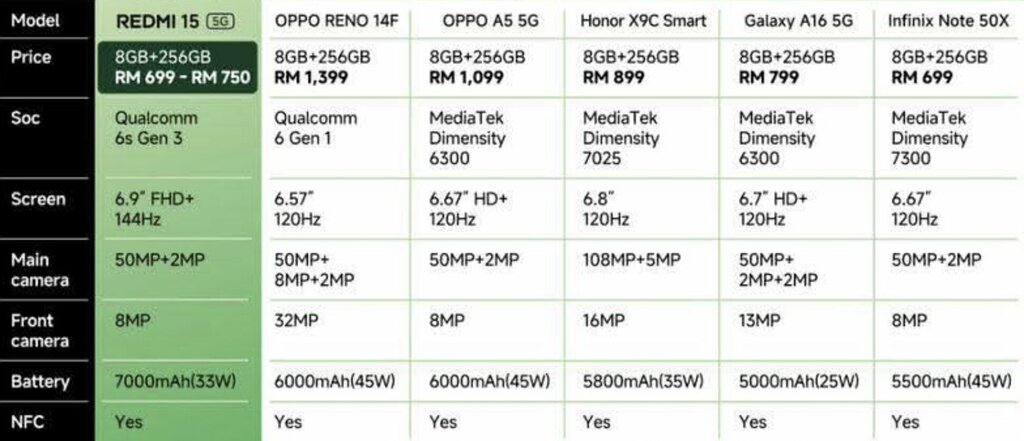 Redmi 15 zdradza cenę przed premierą, a do tego grafika od producenta zdradza kompletną specyfikację. Jedno jest pewne – mamy nowego króla tanich smartfonów.
