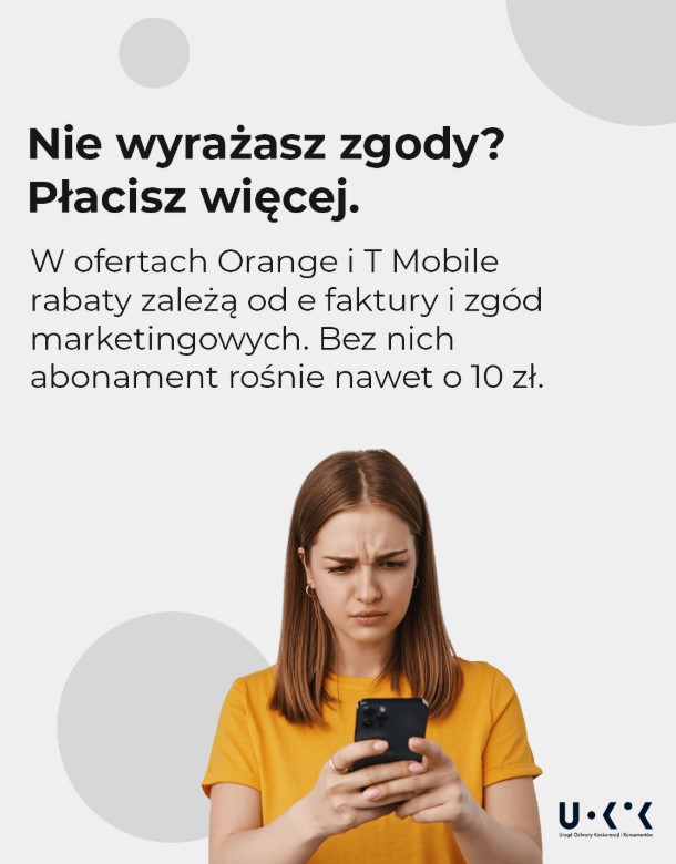 Zarzuty UOKiK dotyczą m.in. reklam oraz rozmów sprzedażowych prowadzonych przez pracowników operatora. Sieci te prezentują atrakcyjne ceny abonamentów, jednak nie informują do końca jasno, że te kwoty zawierają już zniżki za wyrażenie zgód marketingowych czy wybór faktury elektronicznej.