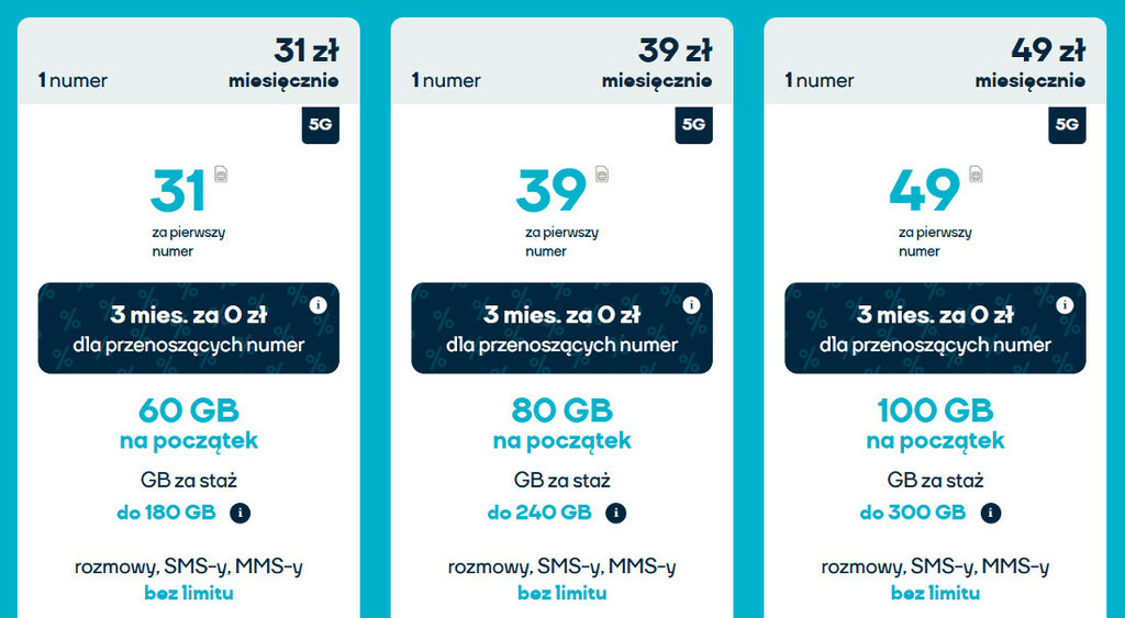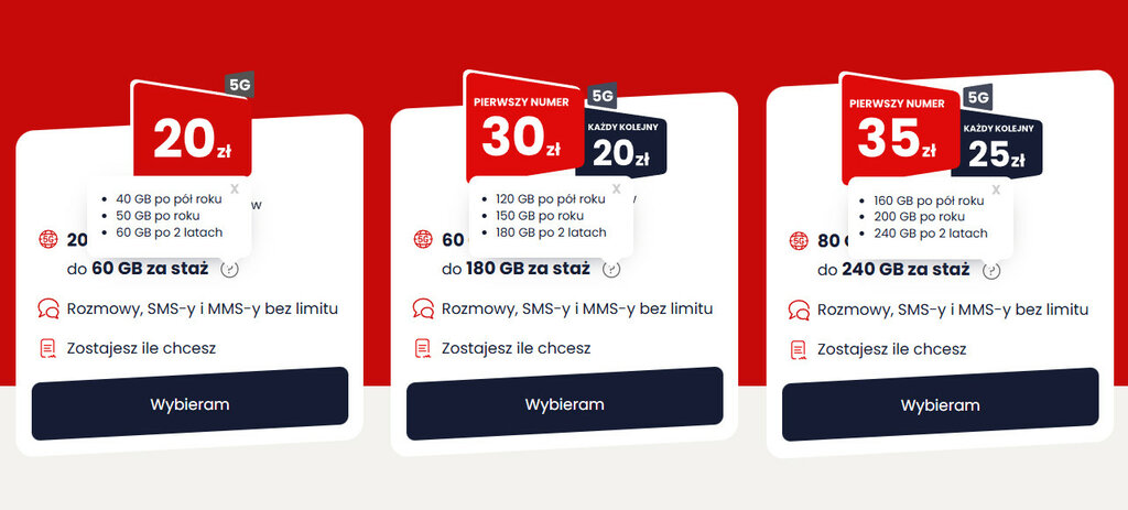 W zależności od wybranego abonamentu, po 2 latach możesz zyskać odpowiednio 120, 160 lub nawet 200 ekstra transferu 5G.