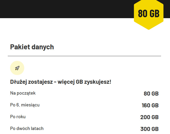 Co ciekawe, jeszcze parę tygodni temu było to odpowiednio 100/200/400 GB, w dodatku teraz PLAN ROCKET jest w promocyjnej cenie i tańszy o 5 złotych niż wcześniej. Jakby tego było mało, rośnie też bonus za każdą opłaconą fakturę w terminie z 10 do aż 40 GB.