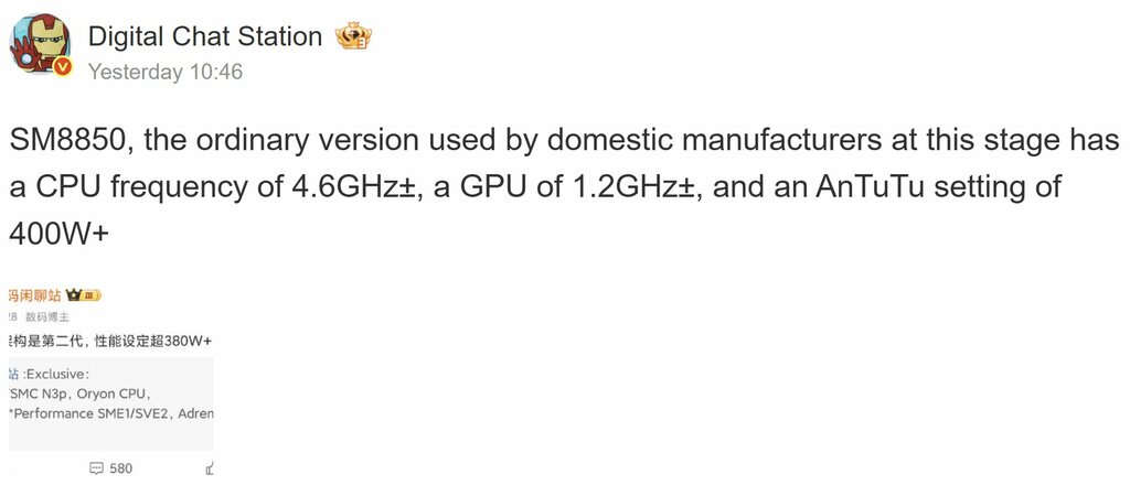 4.6 GHz i ponad 4 miliony w AnTuTu. Takimi wynikami ma legitymować się Snapdragona 8 Elite 2, którego znajdziemy w prawie każdym flagowcu z Androidem nadchodzących miesięcy. Zwrócę tylko uwagę, że istnieje jeszcze mocniejsza wersja dla Galaxy, która została podkręcona do 4.74 GHz.