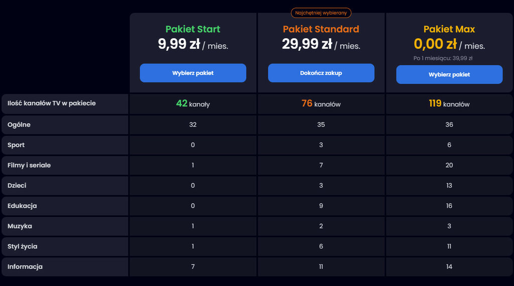 Rodzaje kanałów telewizyjnych w pakietach TV Smart.pl: