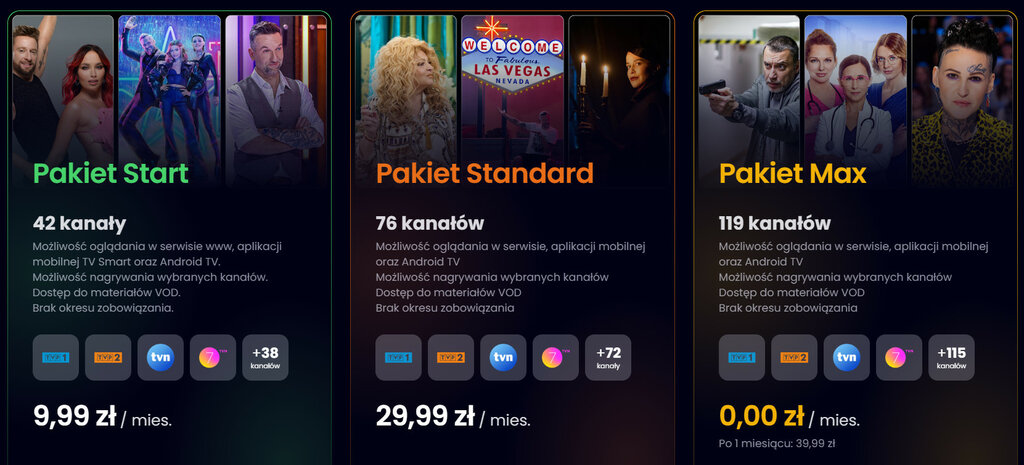 Kanały TVN Fabuła, HGTV, TVN Style i TVN Turbo są dostępne wyłącznie w pakietach Standard oraz Max, w których funkcja CatchUp umożliwia cofanie do aż 7 dni wstecz. Oznacza to o wiele większą elastyczność i swobodę oglądania – Twój ulubiony program poczeka na Ciebie do upragnionego weekendu!