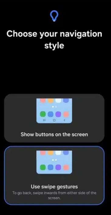 Według najnowszych doniesień, w nieopublikowanej jeszcze wersji tej nakładki systemowej znaleziono już ślady nowego ekranu wyboru (zdjęcia poniżej), który pozwoli użytkownikowi podczas konfiguracji nowego urządzenia wybrać, czy woli poruszać się po telefonie przy użyciu gestów, czy tradycyjnych przycisków.