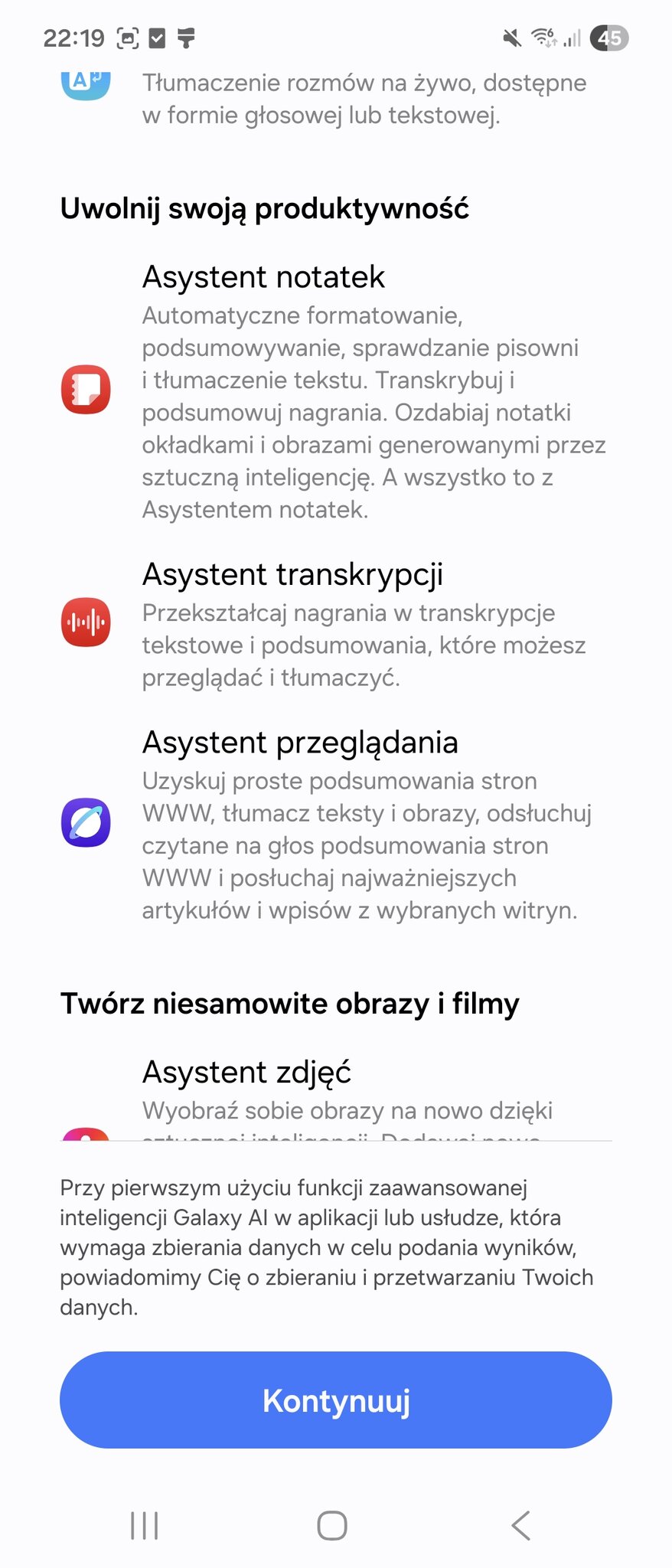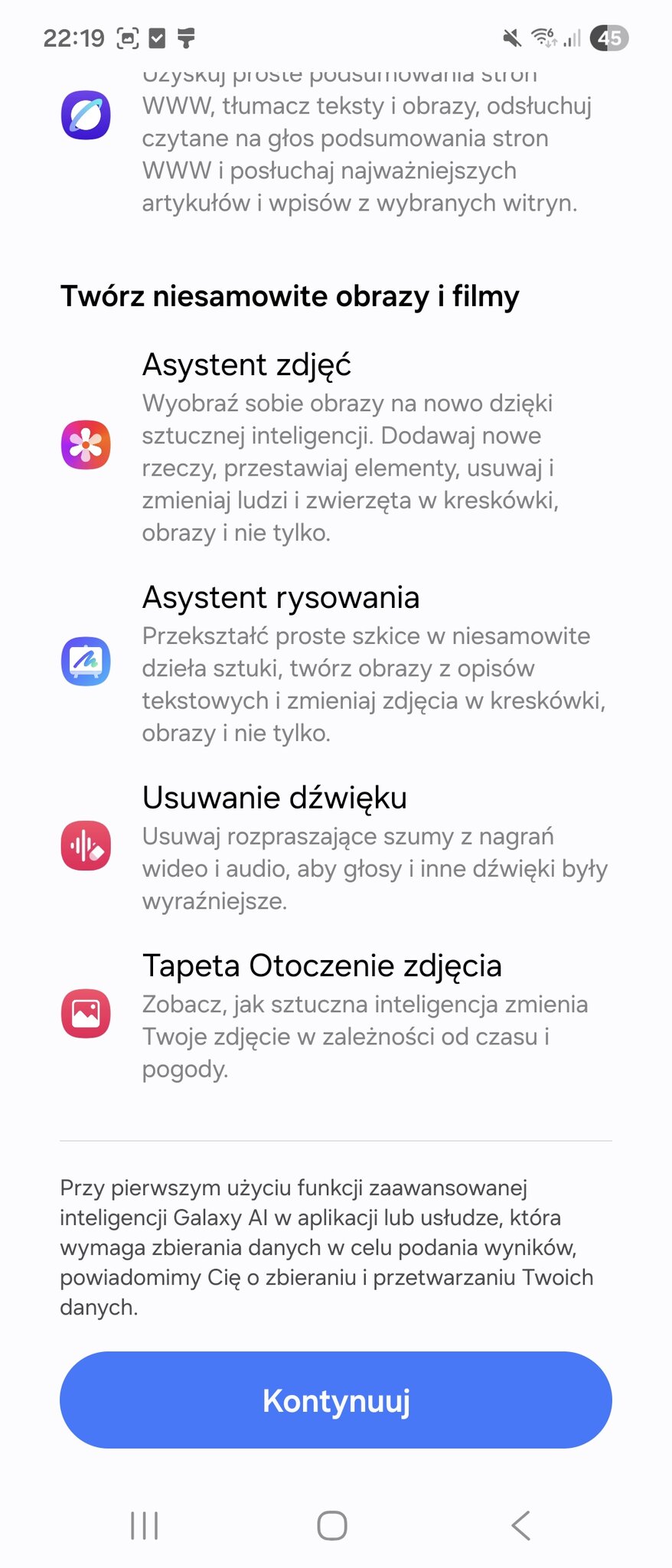 W Galaxy Z Flip7 szczególny nacisk położono na funkcje AI. Te same rozwiązania, które znamy z serii S25, znajdziemy również tutaj – od pisania i streszczania tekstów, przez tłumaczenia, po edycję multimediów. Dla mnie szczególnie użyteczne są opcje edytowania zdjęć z rozpoznawaniem tła czy dźwięków w nagraniach.