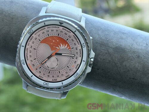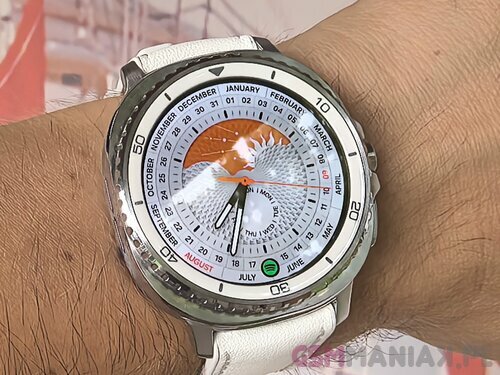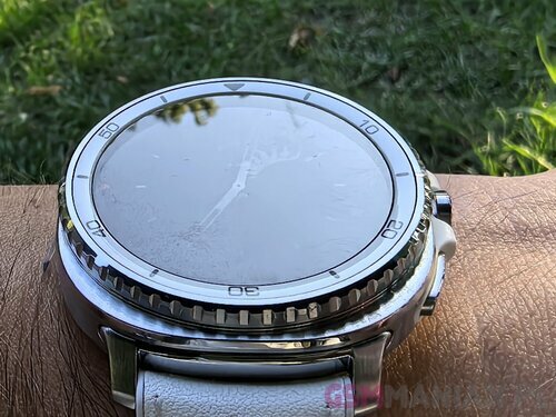 Wizualnie zegarek jest wyraźnie inspirowany Galaxy Watch Ultra. Ma masywniejszą konstrukcję i więcej detali, ale jednocześnie nie idzie aż tak daleko w stronę typowo outdoorowego stylu. Nadal mamy paski z efektem skóry, frezowane detale wokół tarczy i układ przycisków znany z wcześniejszych modeli.