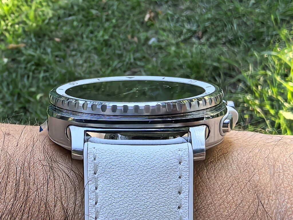 Testując go przez ostatnie dni, miałem okazję sprawdzić, czy ten klasyczny styl idzie w parze z nowoczesną funkcjonalnością. Zegarek jest większy niż poprzednie generacje — dostępny wyłącznie w rozmiarze 46 mm, co dla niektórych może być sporym wyzwaniem, jeśli chodzi o wygodę.