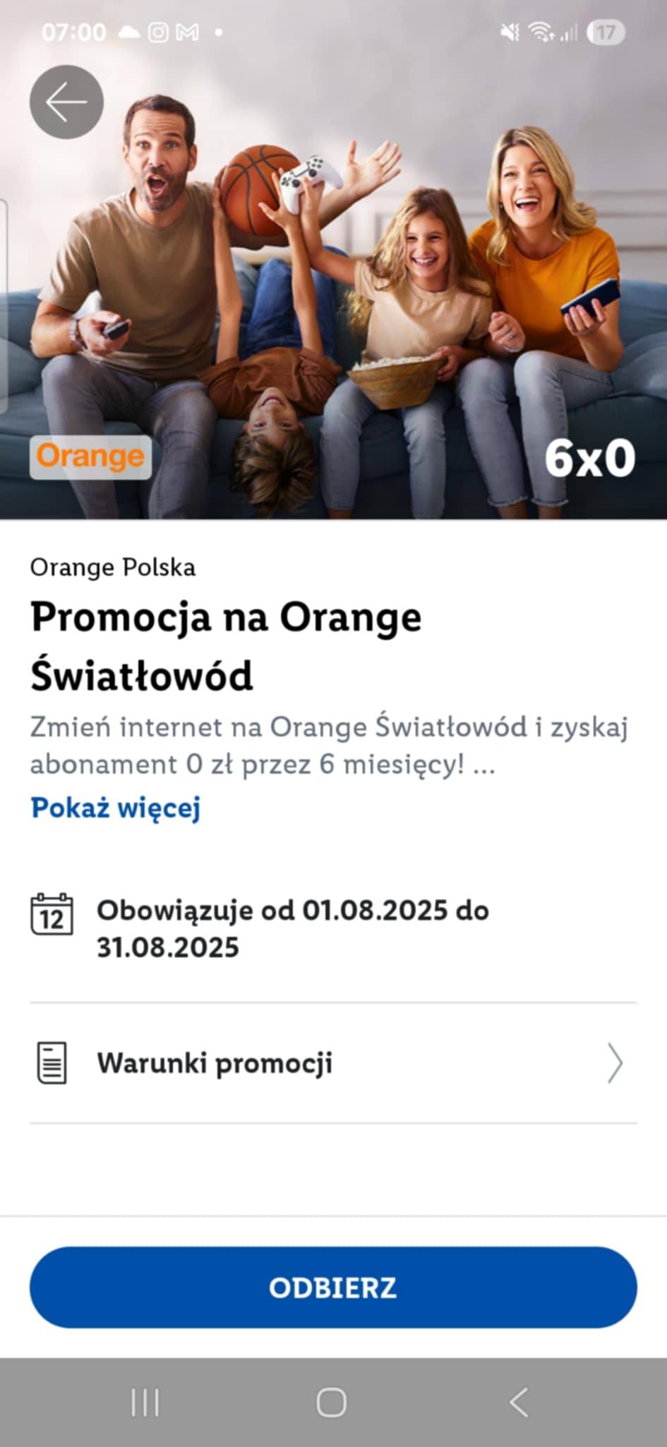 Aby skorzystać z okazji na światłowód Orange, wystarczy wejść do aplikacji i pobrać kod rabatowy. Nie szukaj go w Mój Orange, lecz w aplikacji Lidl Plus!