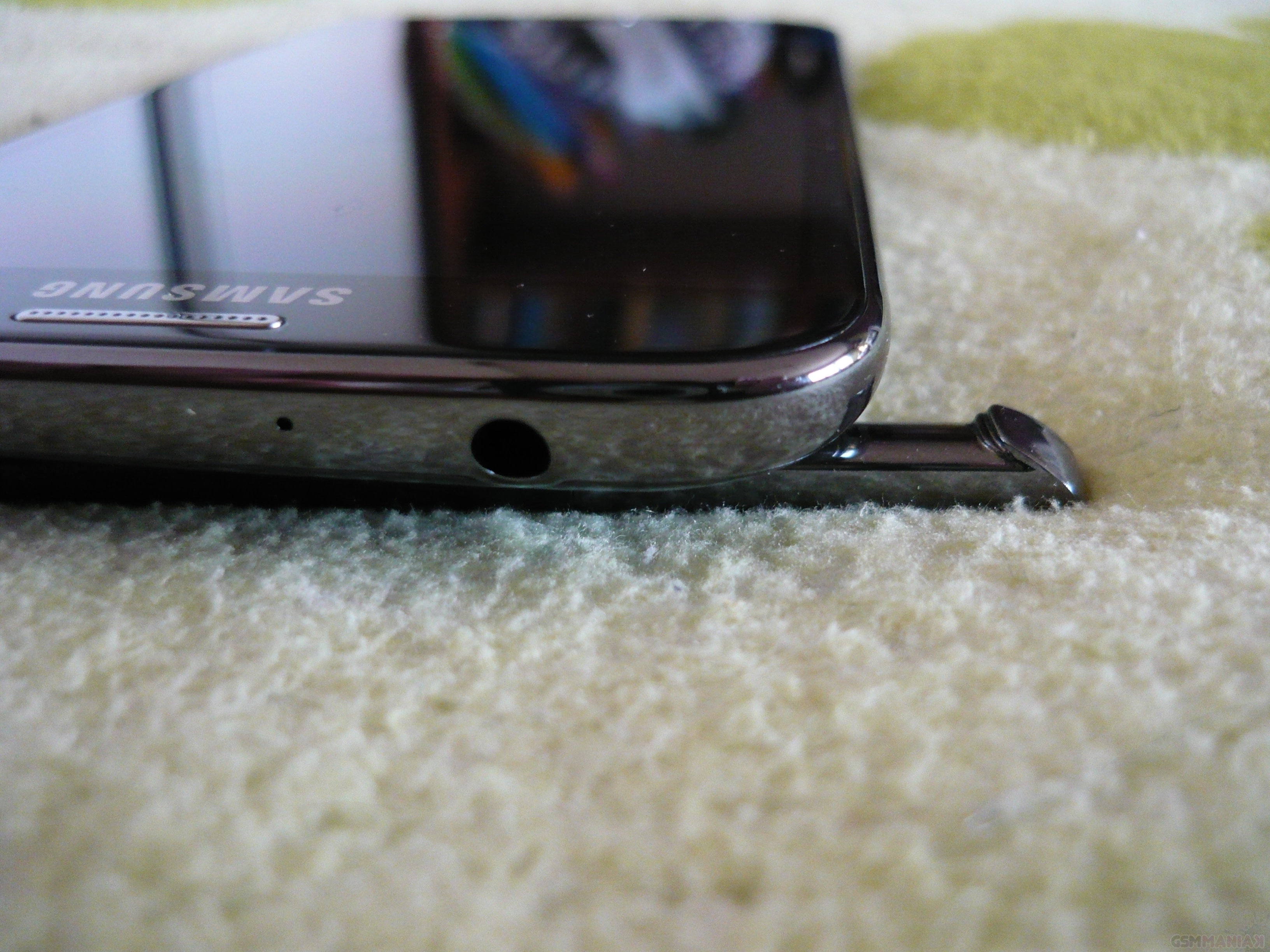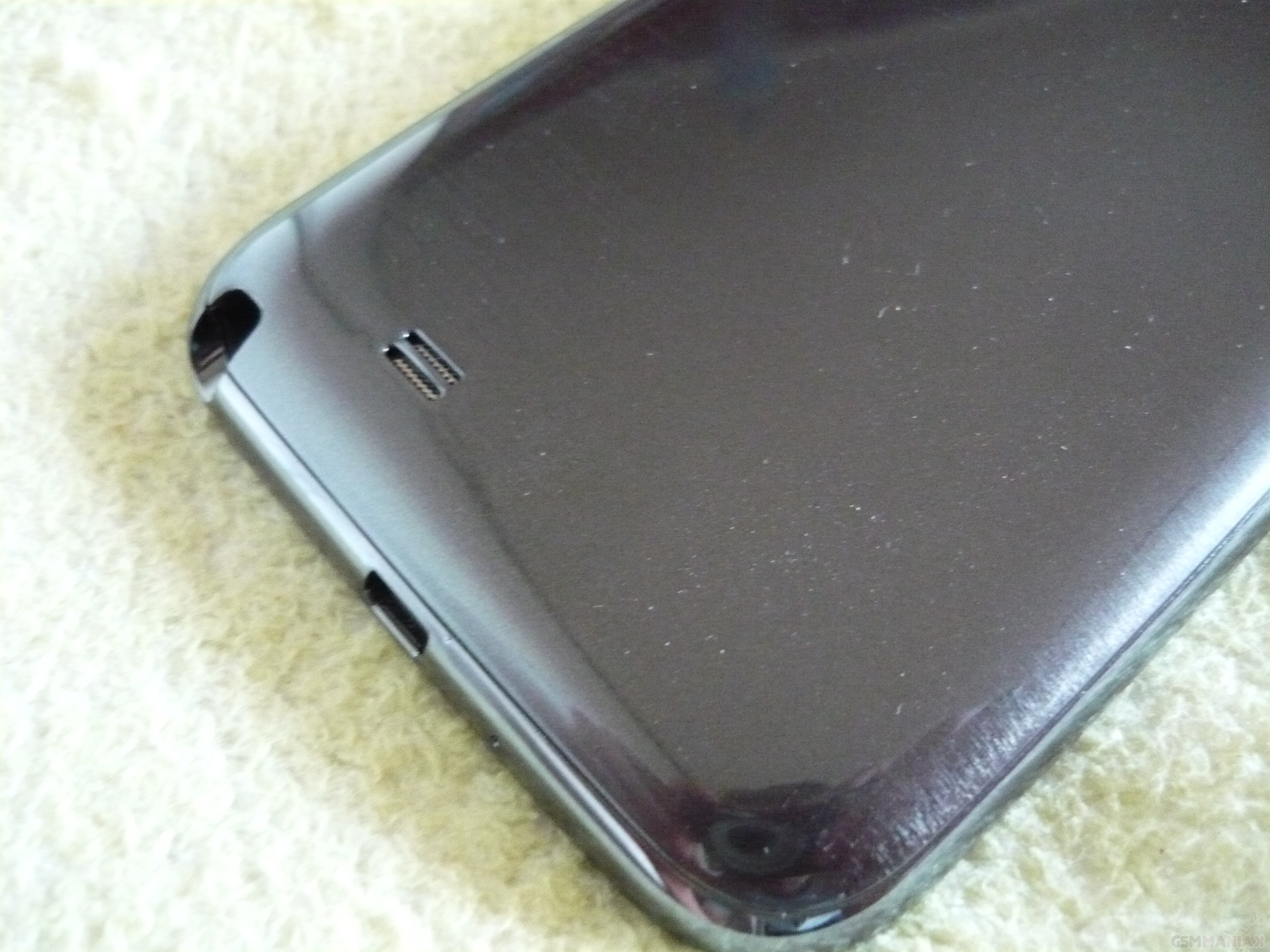 Trzymając smarfon w pozycji domyślnej, na lewym boku znajdziemy wyłącznie przycisk do regulacji głośności, który ma wyczuwalny skok oraz działa bez problemu. Prawy bok to miejsce, które producent przeznaczył na przycisk ON/OFF, który posłuży także do usypiania Galaxy Note II. Na dolnym panelu, w centralnym punkcie, znajduje się port micro USB 2.0, po jego lewej stronie mikrofon główny. Po jego prawej znalazło się miejsce dla stylusa S-Pen, o którym nieco później. Na górnej ścianie obecne jest tylko złącze słuchawkowe w standardzie mini-jack 3.5 mm oraz kolejny mikrofon. Z tyłu obudowy, pierwsze skrzypce odgrywa oczko 8-megapikselowego aparatu głównego, któremu towarzyszy dioda doświetlająca LED o wysokiej mocy, zaś na dole skromna i minimalistyczna maskownica głośnika.