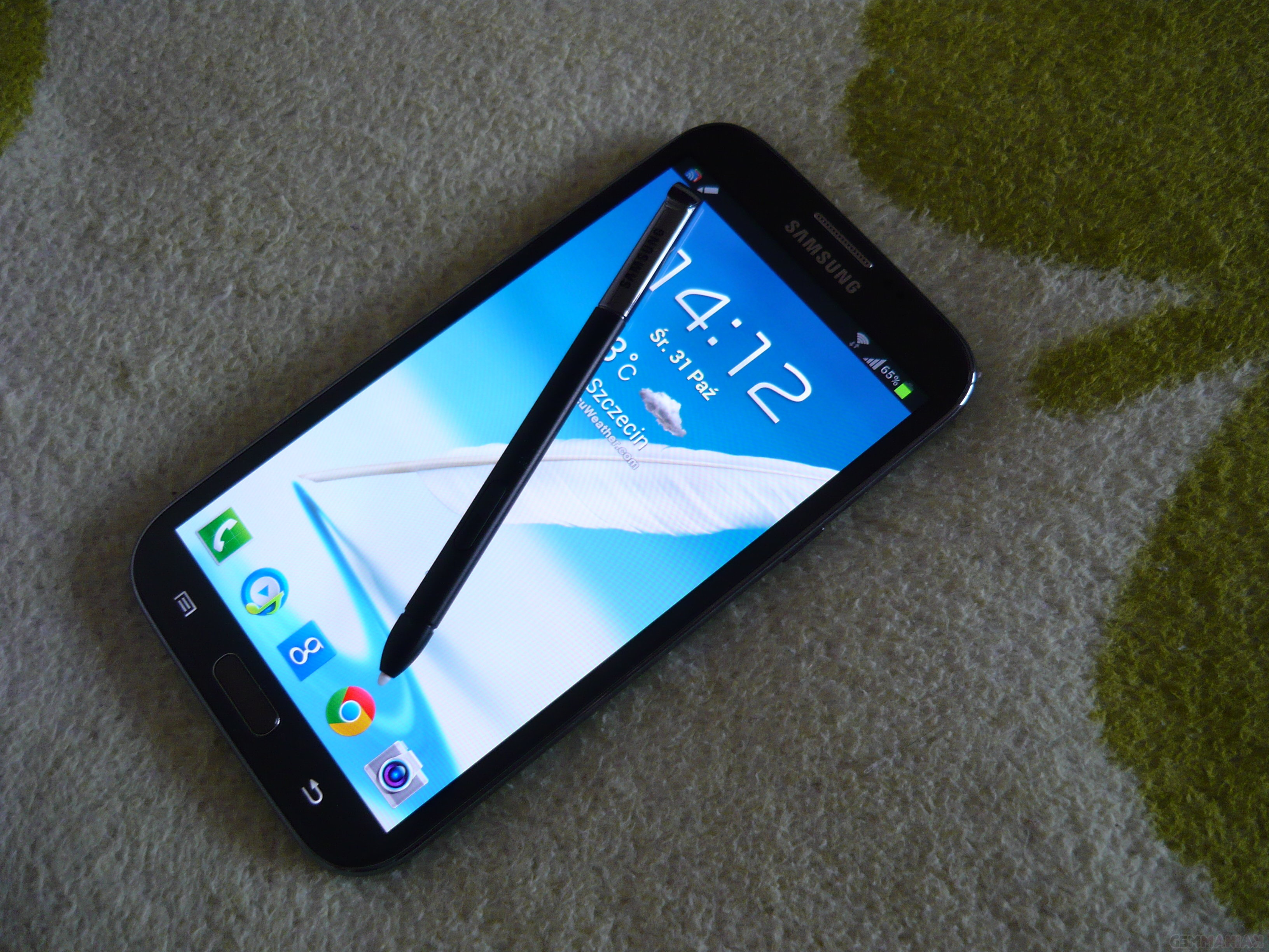 Samsung Galaxy Note II został wyposażony w 8-megapikselowy aparat główny, który wykonuje zdjęcia w maksymalnej rozdzielczości 3264 x 2448 pikseli i wspomagany przez diodę doświetlającą LED w warunkach słabego oświetlania. Aparat zaoferuje wiele przydatnych funkcji, wśród których znajdziemy kilka trybów scenerii (Priorytet, Sport, Wewnątrz, Plaża/śnieg, Zachód słońca, Świt, Kolor jesieni, Tekst oraz Światło) oraz trybów fotografowania (Jedno zdjęcie, Najlepsze zdjęcie, Najlepsze wyrazy twarzy, Detekcja twarzy, Udostępnianie zdjęć, HDR, Udostępnianie zdjęć znajomym, Upiększanie Uśmiech oraz Słabe światło). Dodatkowo możemy wykonać zdjęcia panoramiczne. To tyle od strony funkcjonalności, jeżeli chodzi natomiast o jakość zdjęć, to nie ma się do czego przeczepić. Zdjęcia wychodzą naprawdę wyraźne i czytelne, nawet w słabych warunkach oświetleniowych. Zresztą oceńcie je sami.