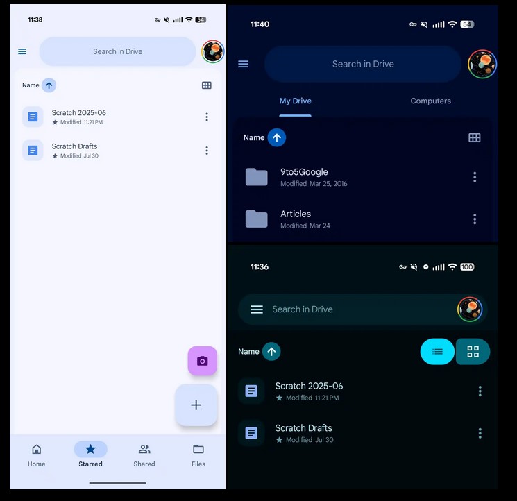 Zmiany wizualne nie ominęły także Dysku Google. Tu Material 3 Expressive zobaczysz również na pasku wyszukiwania, a także dzięki animacji logo. Cała lista lub widok siatki plików są umieszczone w jednym dużym kontenerze, który jest nieco ciemniejszy niż tło.