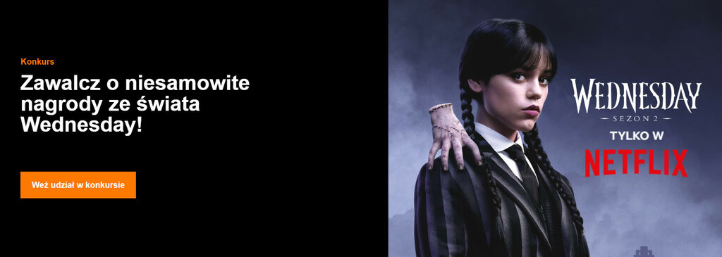 Konkurs Orange inspirowany jest serialem pt. „Wednesday”, którego możesz oglądać właśnie na Netflixie. Dostępne są już jego 2 sezony, a ostatni z nich zadebiutował 6 sierpnia tego roku.