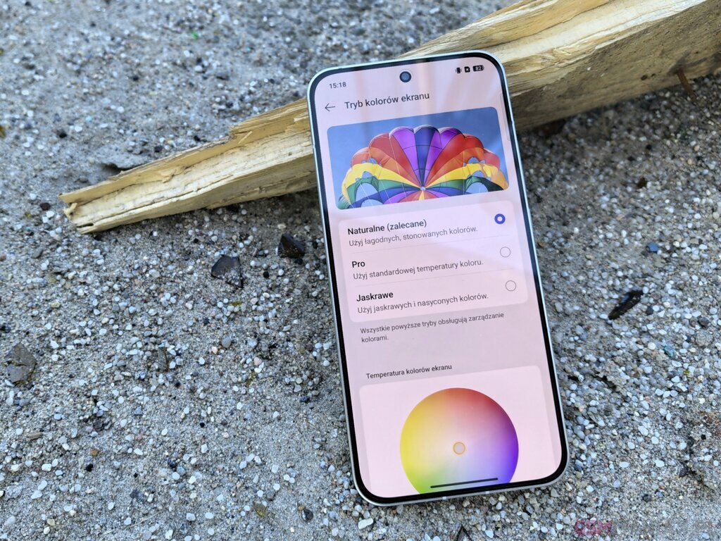 Sam panel wykonano w technologii AMOLED i widać to na pierwszy rzut oka. Kolory są nasycone, kontrast mocny, a obraz po prostu przyjemny dla oka. Co ważne, można go dostosować pod siebie, wybierając jeden z trzech trybów wyświetlania barw. Dla mnie to zawsze ogromna zaleta, bo każdy z nas inaczej odbiera kolory i dobrze, że producent zostawił tu miejsce na personalizację.
