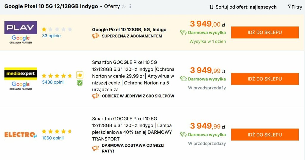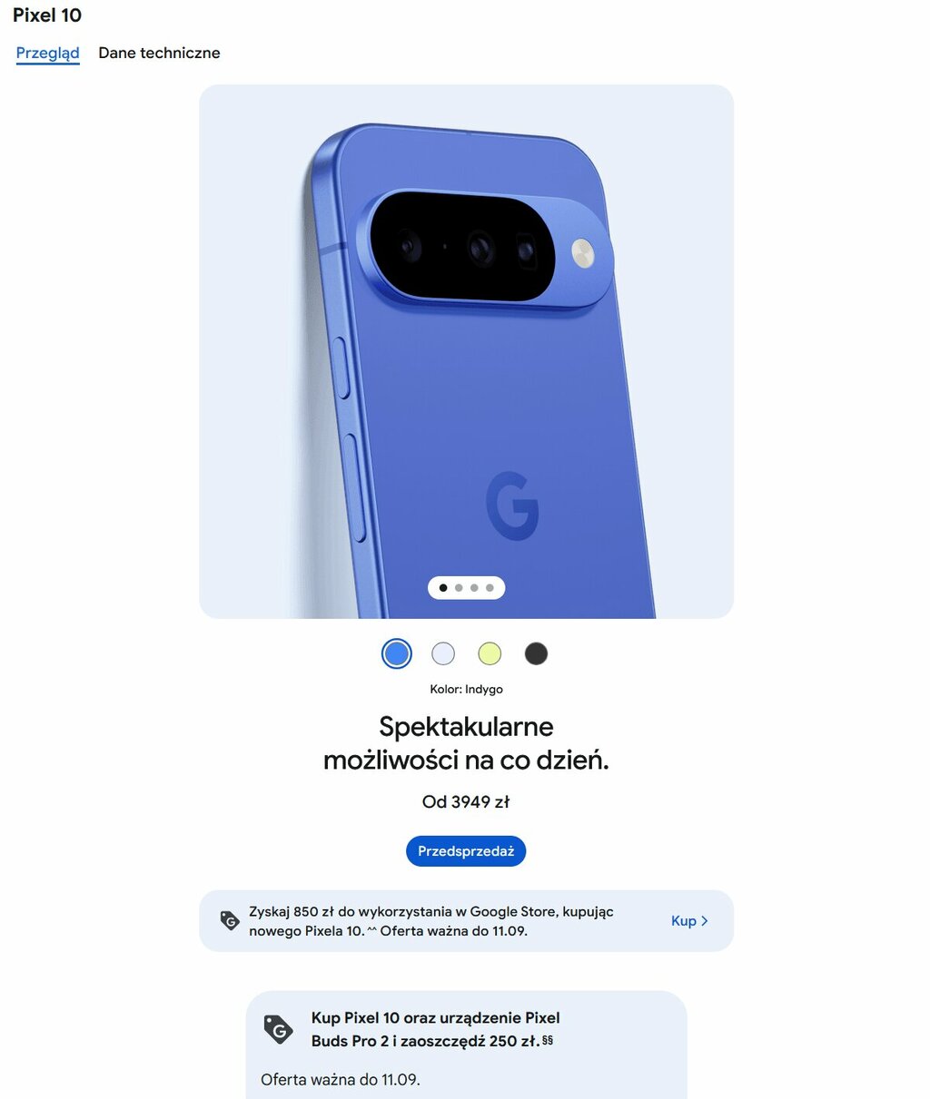 Co do samej ceny, to mówimy o 3949 złotych za najniższy wariant pamięciowy. To 100 złotych mniej względem zeszłorocznego Google Pixel 9, ale z drugiej strony, to właśnie rok temu mieliśmy promocję, w której mogliśmy zakupić większą pojemność w cenie mniejszej. Obecnie możemy liczyć na bonus przy skorzystaniu z programu odkupu starego smartfona, bądź spojrzeć na ofertę w Google Store.