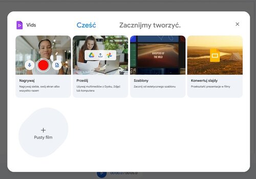 Aplikacja integruje się z Veo, systemem sztucznej inteligencji Google do generowania wideo i dźwięku. Po zakończeniu edycji Vids zapisuje osobną kopię pliku, pozostawiając oryginalny film nienaruszony. Jeśli zaliczasz się do osób uprawnionych do korzystania z nowego narzędzia, po otwarciu Dysku zobaczysz taki obrazek: