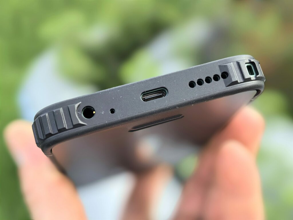 Na uwagę zasługuje także obecność gniazda słuchawkowego, które znalazło się na dolnej ramce. To coraz rzadszy element w smartfonach, a tutaj pojawia się w sprzęcie, który ma być praktyczny i odporny.