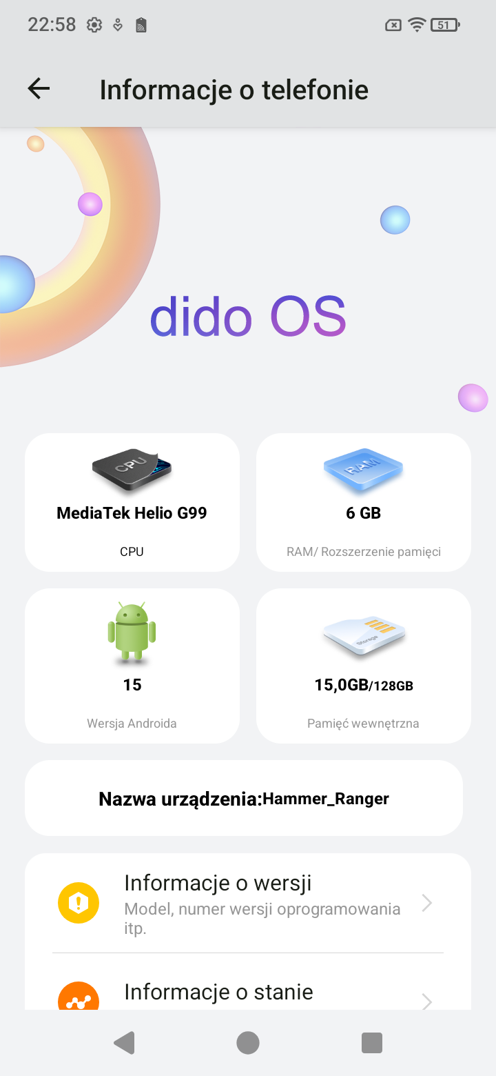 Smartfon pracuje w oparciu o system Android 15 z nakładką dido OS. Interfejs jest świeży, przejrzysty i łatwy w obsłudze. Duży nacisk położono na personalizację – można dostosować wygląd i funkcje pod własne potrzeby, co daje poczucie, że to smartfon faktycznie przygotowany dla użytkownika, a nie odwrotnie. To ważne, bo urządzenia z segmentu „rugged” często cierpią na toporne oprogramowanie, a tutaj jest naprawdę przyjemnie.